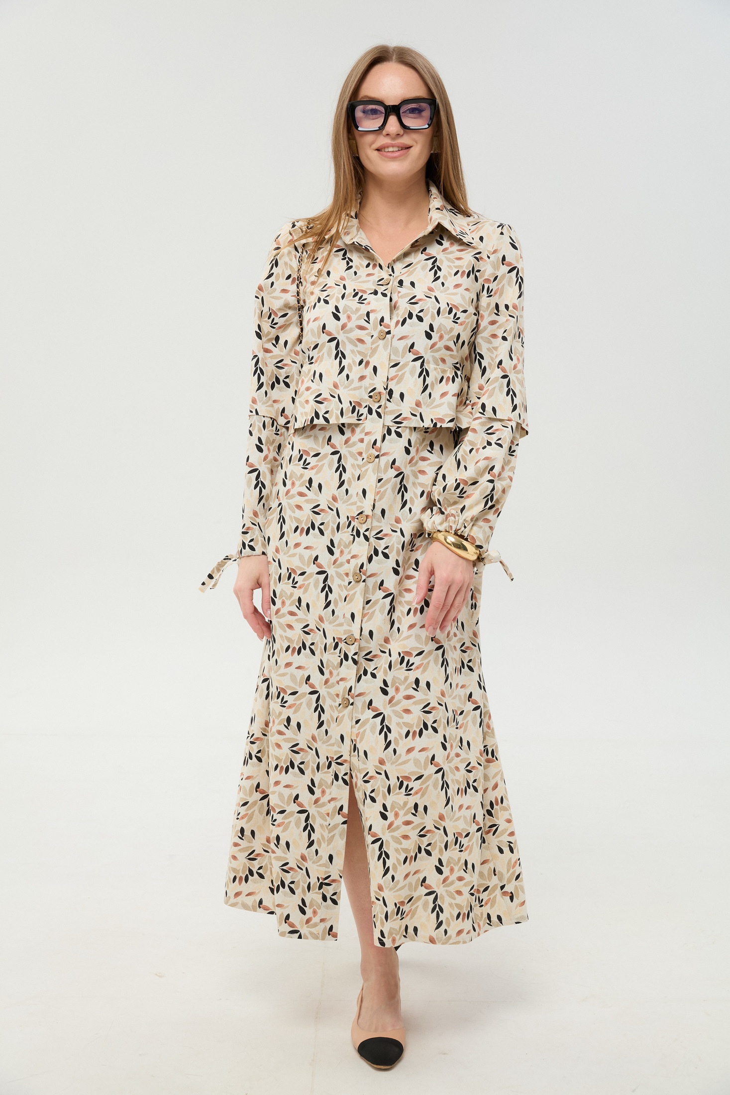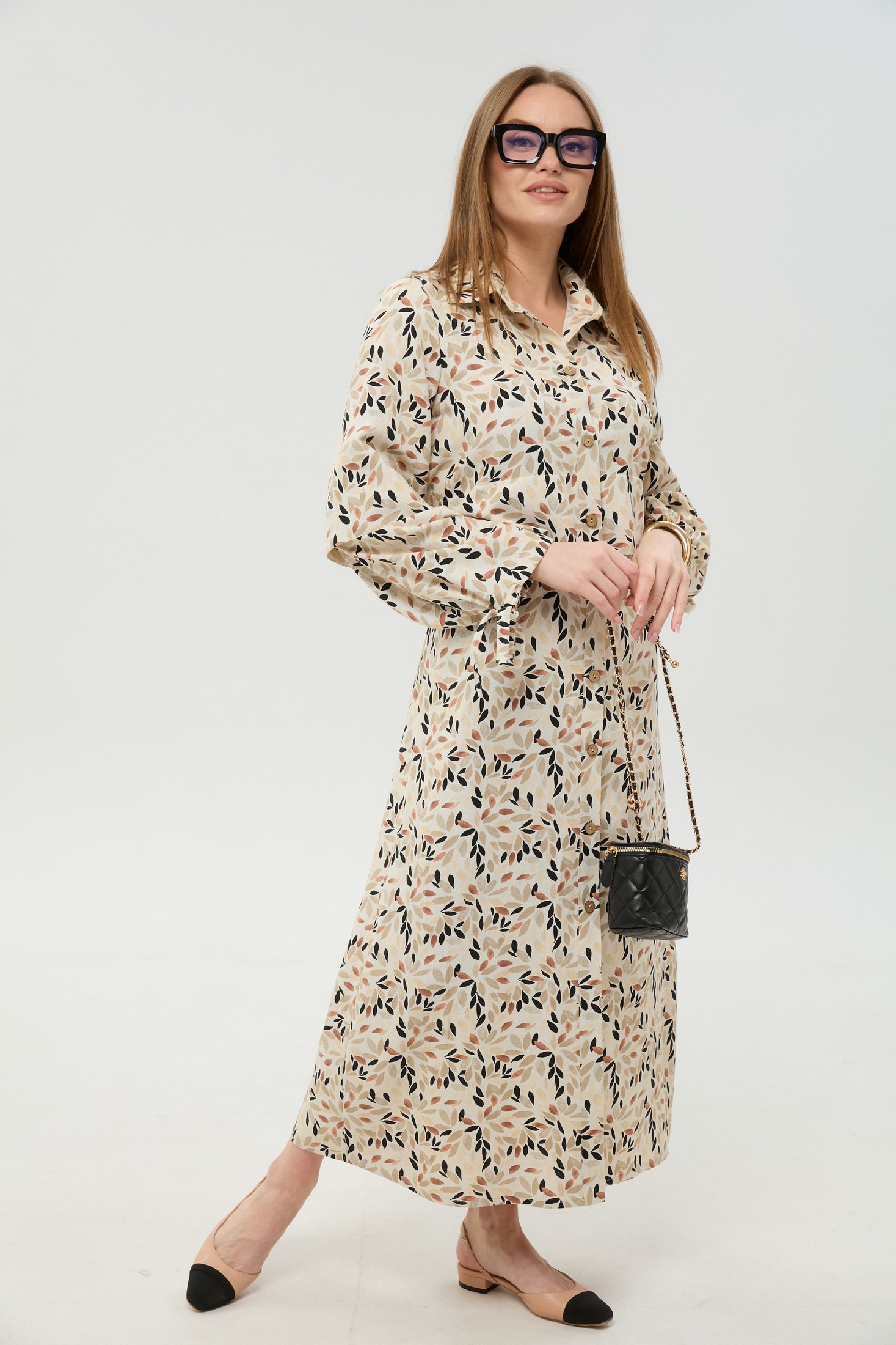Платье 944-11 песочный мультиколор NikVa — это модное решение для любого случая. Коллекция бренда NikVa предлагает максимальную длину с центральной отрезной застёжкой на потайную планку и пуговицы. Изготовленное из лена и вискозы, платье обладает дышащими свойствами, обеспечивая комфорт в теплое время года. Стильная расцветка с уникальным принтом делает его идеальным для повседневной носки и особых мероприятий. Втачной рукав с завязкой позволяет регулировать сборку, а рубашечный воротник добавляет изысканное звучание. Пояс из основной ткани обеспечивает идеальную посадку на талии, подчеркивая женственность силуэта.