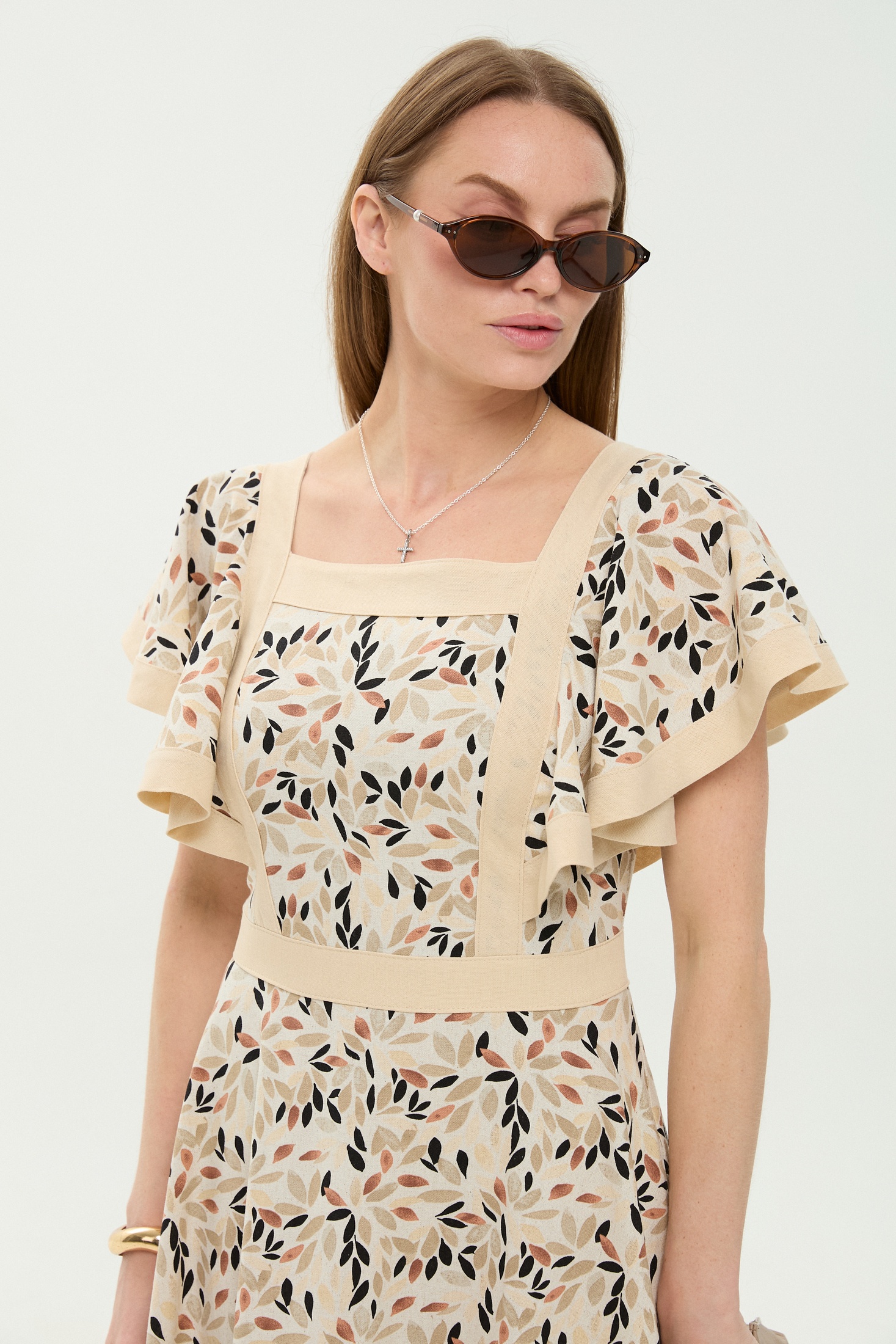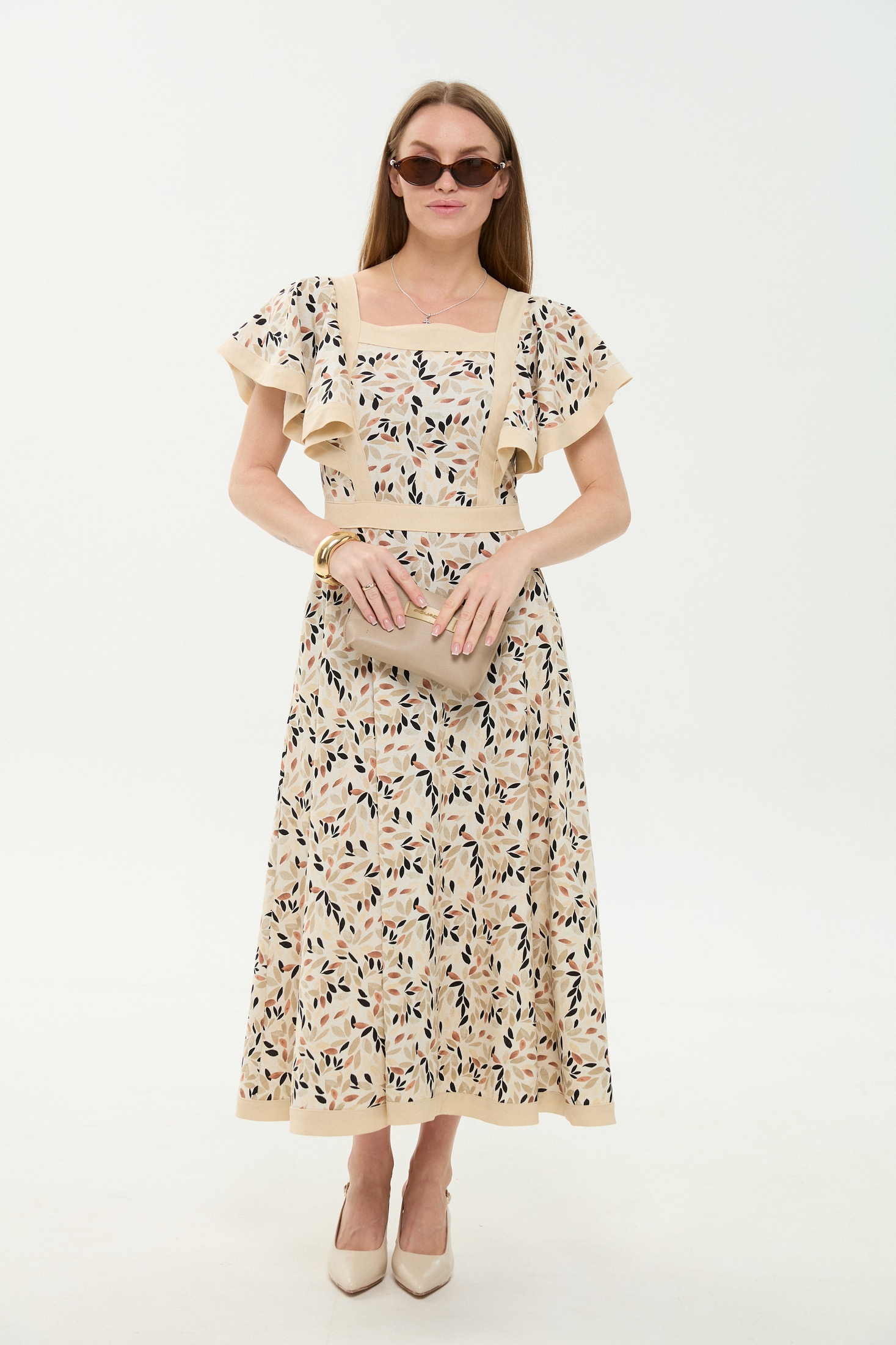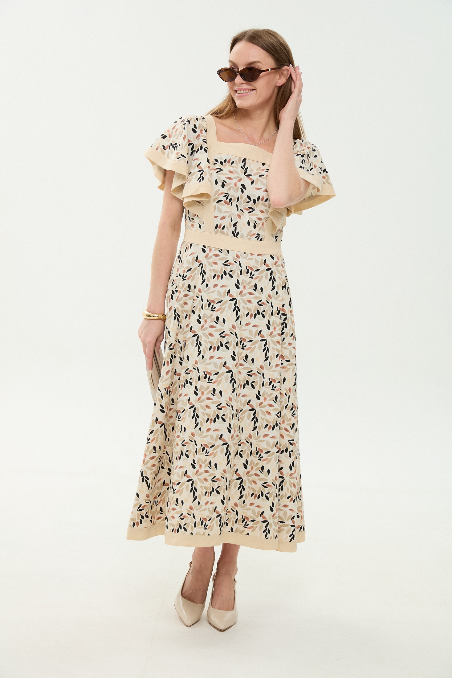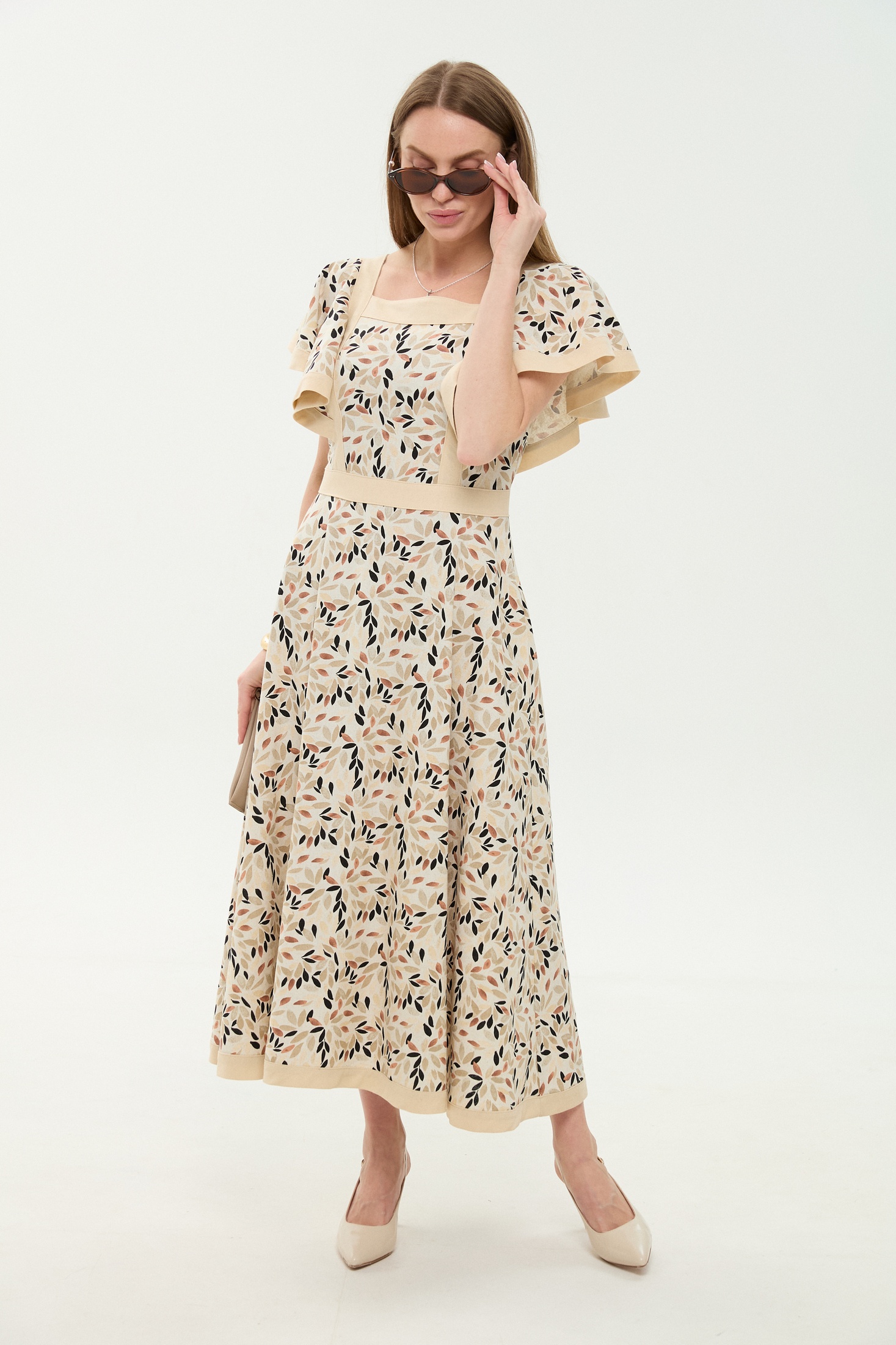 Платье 984-3 песочный мультиколор NikVa — это стильный выбор для любого сезона. Коллекция бренда NikVa предлагает вам платье с выразительным рисунком. Материал включает лён, вискозу и хлопок, что обеспечивает лёгкость и комфорт на весь день. Платье прилегающего силуэта с расклешенной юбкой и фигурной горловиной добавляют уверенности в каждом движении. Потайная застёжка на молнию по спинке и отрезной пояс подчёркивают талию. Подходит для повседневных или праздничных мероприятий благодаря универсальному дизайну и яркому мультиколорному узору. Длина миди делает это платье отличным выбором для весенне-летнего сезона.