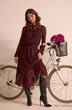 Изящное модное платье из итальянского шифона представлено в темно-коричневом оттенке с изысканным белым полка-дот принтом. Модель свободной формы с резинкой по линии талии, которая обеспечивает идеальную посадку и комфорт. Платье чуть отрезное выше линии талии, дополнено двумя ярусами воланов, придающими изделию динамичный и одновременно нежный силуэт. Расширенный к низу крой элегантно обрамляет фигуру, подчеркивая стильное исполнение. Детали, такие как длинные рукава на манжетах и аккуратный воротник-галстук, добавляютрафинированности.