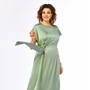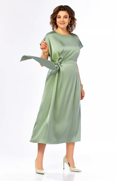 Платье 1008 шалфей Ольга Стиль станет отличным выбором для стильных дам. Коллекция бренда Ольга Стиль. Изготовлено из полиэстера с добавлением вискозы и спандекса, что придаёт ткани мягкость и лёгкость. Полуприлегающий силуэт со спущенным рукавом и отрезное по линии талии фасон делают это платье универсальным для любого случая. Закладка складок и пояс из основной ткани подчёркивают женственность. Потайная молния на спинке и длина 123 см добавляют комфорта. Это платье, выполненное в нежном зелёном цвете, идеально подходит для весенне-летнего сезона и станет отличным выбором для повседневного гардероба и праздничных мероприятий.