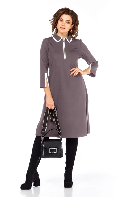Интересное плать из премиального трикотажного полотна, с воротником поло и застежкой-молнией по центру. Контрастная отделка, А-силуэт, разрезы в боковых швах. Рукав втачной с контрастной отделкой-планкой по низу.Длина платья 106см, длина рукава 51см.
