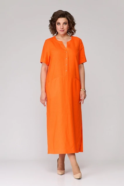 Красивое платье, длиной «макси», выполнено из льняной ткани с добавлением вискозы.