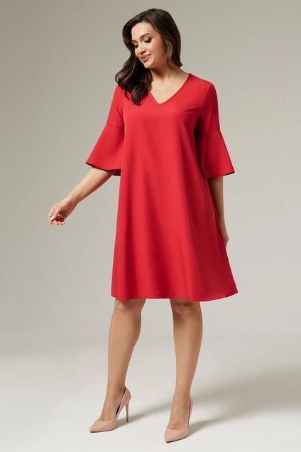 Платье женское из лёгкой ткани для повседневной носки. Платье расширяющеееся к низу с V- образной горловиной. Рукава оформлены воланом. Длина изделия до колена.
