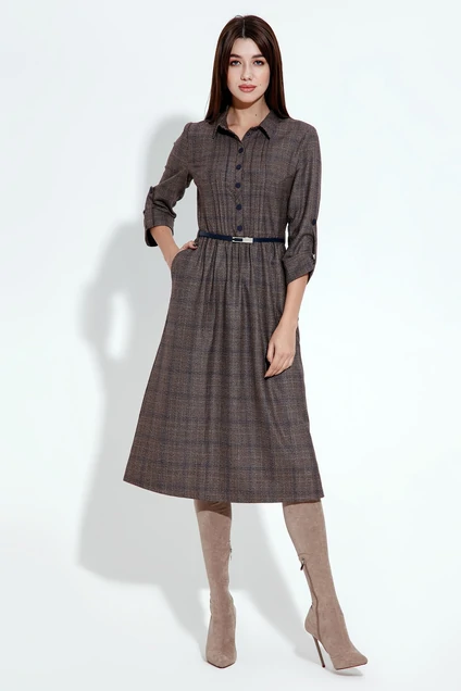 Элегантное стильное платье построеное на сочетании стильной клетки в пастельных тонах и фурнитуры в виде тёмных акцентов . Платье отрезное по линии талии с расклешоной юбкой .Длина ниже колена и с внутренними карманами по бокам.Талия посажена на резинку. Лиф прилегающий с рубашечным воротником и застёжкой на планке на кнопки до талии. Рукав втачной с притачным мандетом по низу При помощи паты длину рукава можно регулировать.Игра клетки в платье невероятно стройнит фигуру.Платье будет прекрасным вариантом на каждый день и в офис для стильной и яркой девушки.