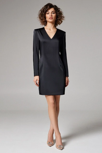 Роскошное облегающее женское платье-футляр с эффектным V-образным вырезом станет отличным выбором для тех, кто стремится подчеркнуть свой элегантный стиль. Это нарядное платье выполнено из атласной ткани средней плотности, что делает его идеальным вариантом для демисезонного гардероба. Оно идеально подойдет как для офиса, так и для корпоративных мероприятий, благодаря своему классическому, но в то же время стильному дизайну. Приталенный крой и длинные рукава создают образ, который сочетает в себе деловой и повседневный стиль, предоставляя возможность носить это платье как в будни, так и на праздничные события, такие как Новый год или корпоративы.