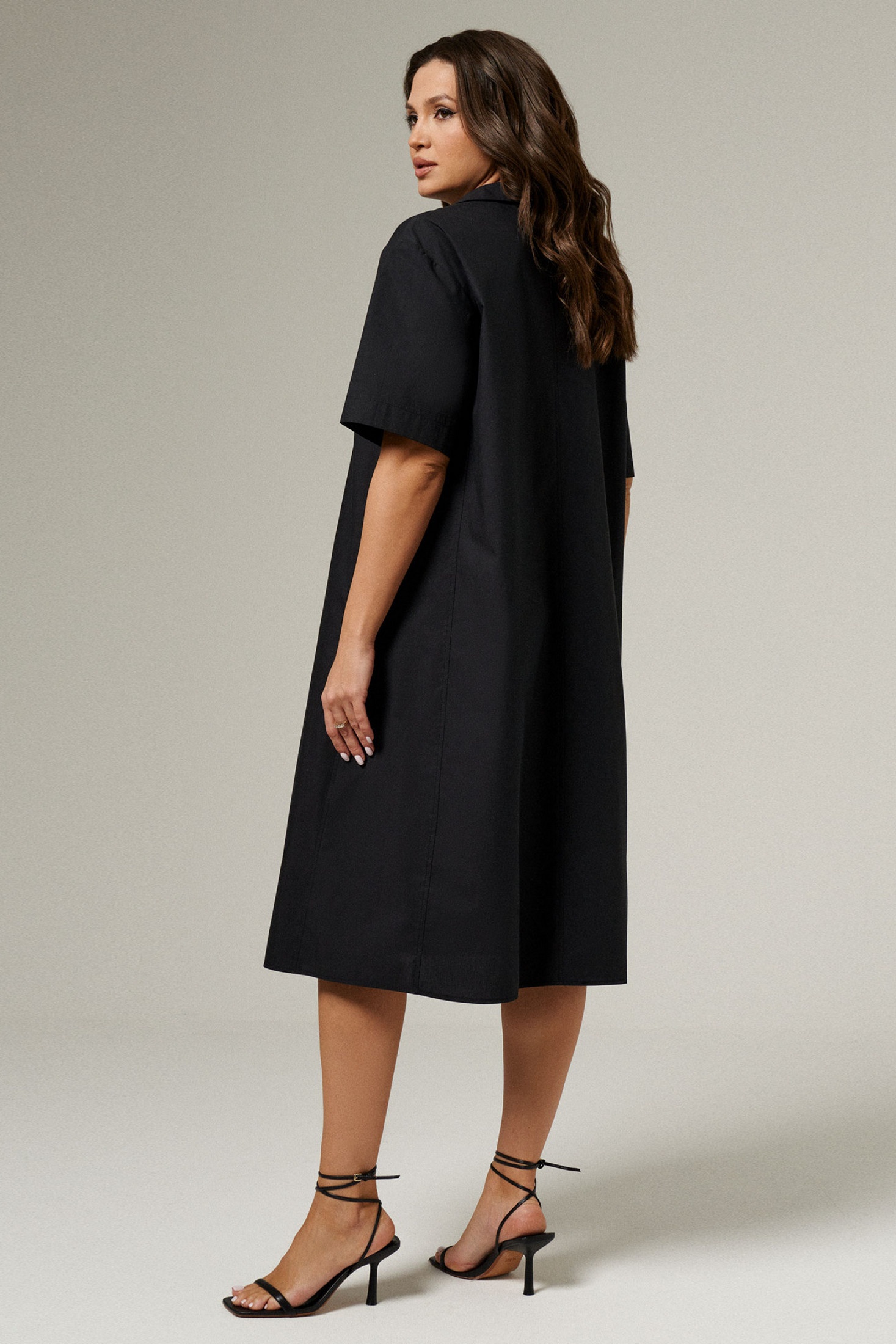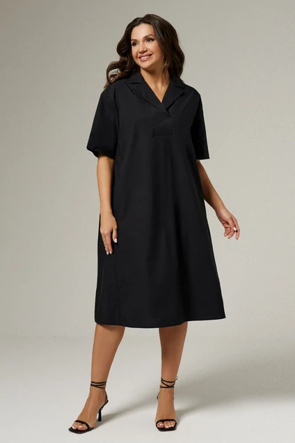 Платье 171683w черный Panda из коллекции бренда Panda выполнено из удобной смесовой ткани с высоким содержанием хлопка, что позволяет коже дышать и обеспечивает комфорт. Это приталенное платье с пиджачным воротником идеально подходит для повседневного стиля благодаря практичным карманам в шве. С рукавами длиной чуть ниже локтя и средним швом на спинке, платье расширяется к низу, подчеркивая женственность силуэта. Универсальный черный цвет делает его отличным выбором для любого времени года, добавляя стиль в ваши прогулки или рабочие будни.