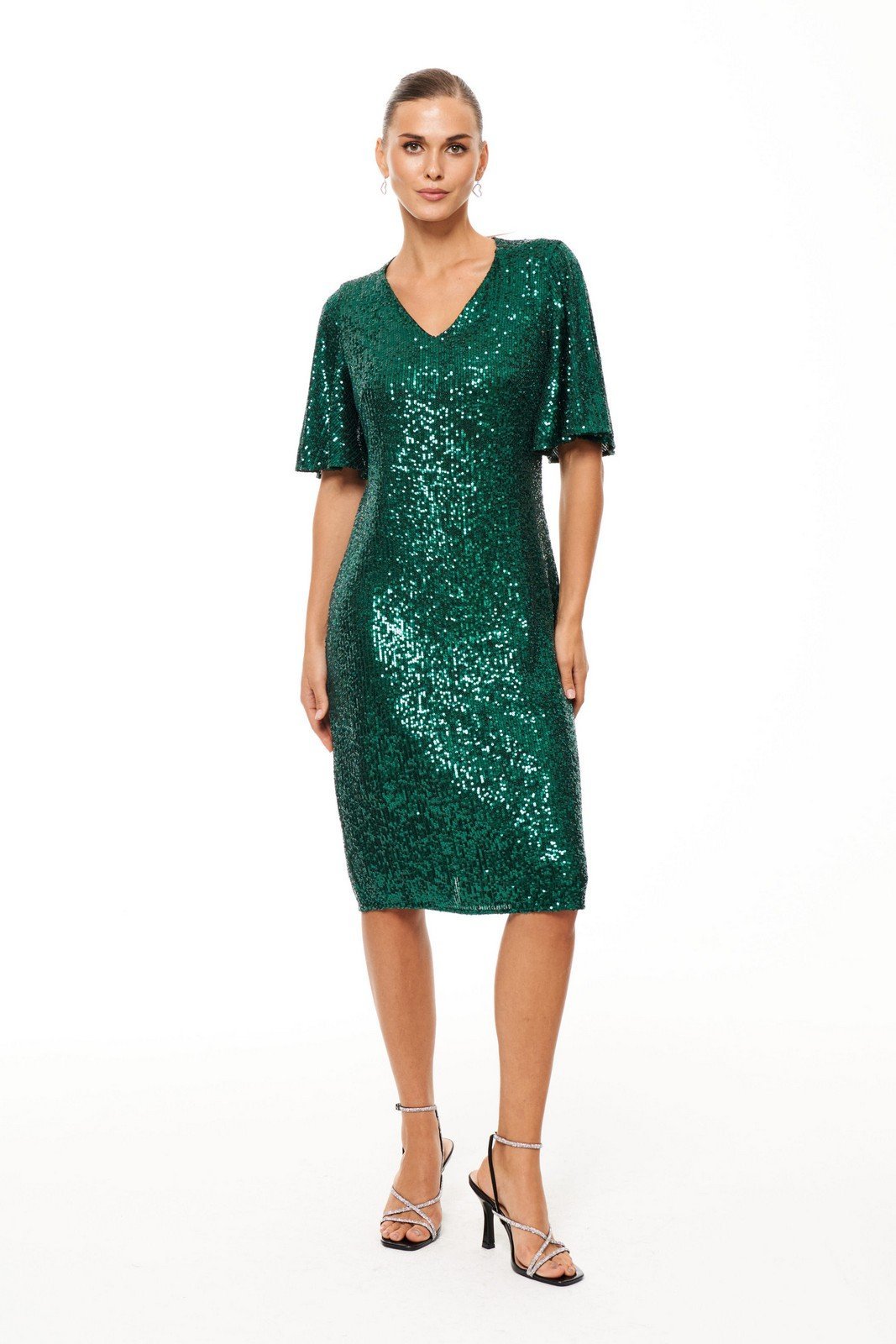 Женское платье из струящейся ткани с пайетками создано специально для торжественных мероприятий.