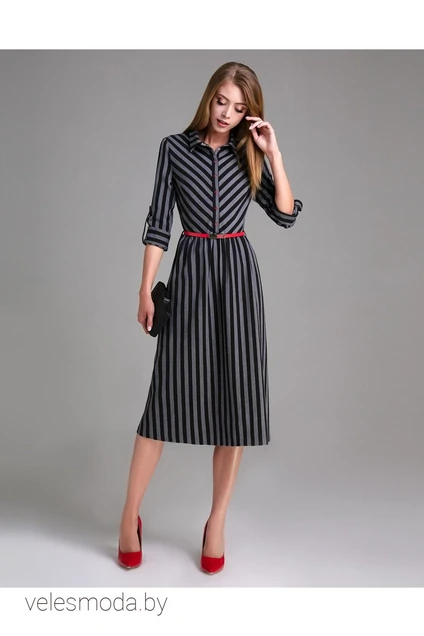 Элегантное стильное платье построеное на сочетании графичной чёрно-серой полосы и ярких красных акцентов. Платье отрезное по линии талии с расклешоной юбкой .Длина ниже колена и с внутренними карманами по бокам.Талия посажена на резинку.В боковом шве оформлена потайная молния. Лиф прилегающий с рубашечным воротником и застёжкой на планке на петли и пуговицы до талии. Рукав втачной с притачной отложной манжетой и патой,позволяющей менять длину рукава.Игра полос в платье невероятно стройнит фигуру.Платье будет прекрасным вариантом на каждый день и в офис для стильной и яркой девушки. 42 Платье: Дл.спины от высшей плечевой точки до талии - 40см, Длина изделия - 113см, Длина рукава - 48см, Обхват шеи - 43см, Ширина плеча - 11см, Ширина по бедрам - 61см, Ширина по груди - 45см, Ширина по талии - 33см, Ширина рукава - 16см 44 Платье: Дл.спины от высшей плечевой точки до талии - 40см, Длина изделия - 113см, Длина рукава - 48см, Обхват шеи - 44см, Ширина плеча - 11см, Ширина по бедрам - 63см, Ширина по груди - 47см, Ширина по талии - 35см, Ширина рукава - 16,8см 46 Платье: Дл.спины от высшей плечевой точки до талии - 40,5см, Длина изделия - 113см, Длина рукава - 48см, Обхват шеи - 45см, Ширина плеча - 11,2см, Ширина по бедрам - 65см, Ширина по груди - 49см, Ширина по талии - 37см, Ширина рукава - 17,5см 48 Платье: Дл.спины от высшей плечевой точки до талии - 40,5см, Длина изделия - 114см, Длина рукава - 48см, Обхват шеи - 46см, Ширина плеча - 11,5см, Ширина по бедрам - 67см, Ширина по груди - 51см, Ширина по талии - 39см, Ширина рукава - 18,2см