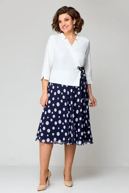 Платье 1-036 синий + горох POCHERK