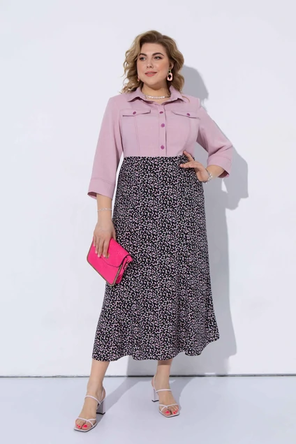 Платье 2215 пыльная роза + черный в мелкий розовый цветочек Pretty