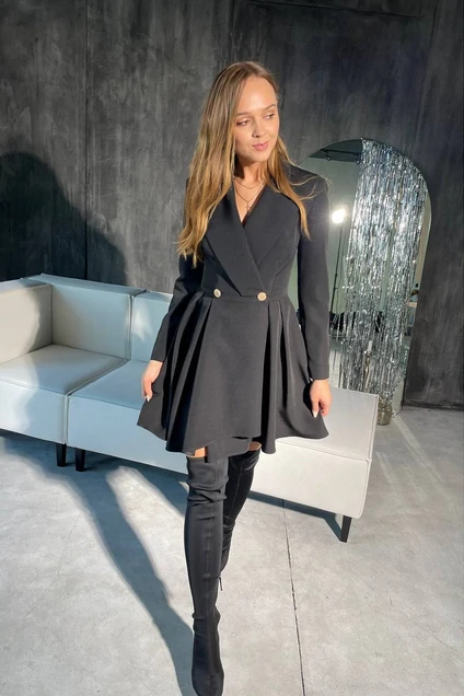Платье полуприлегающего силуэта,на запах, застегивается спереди на пуговицы.Сзади талиевые вытачки.Данное платье отлично "сядет" на любую фигуру,подчеркнет ее силуэт, добавит в образ элегантность и женственность.
