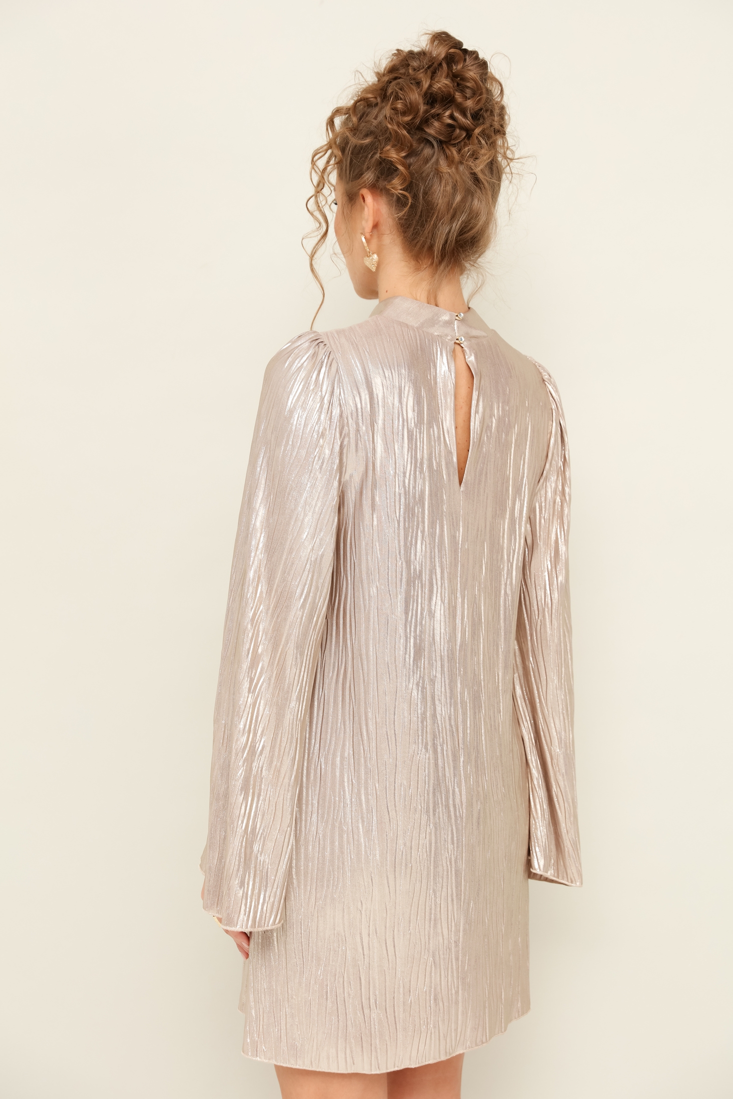 Платье свободного силуэта, с расклешеными рукавами,из гофрированной струящейся ткани, на подкладке.
