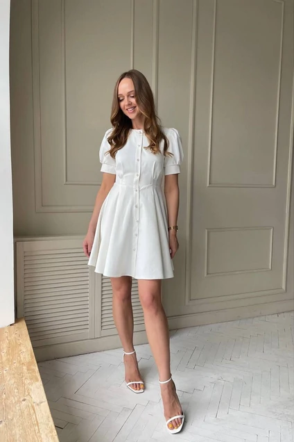 Данная модель отличается особой женственностью, простотой и универсальностью, а молочно-жемчужный цвет не оставит вас незамеченной! Рукав " фонарик", силуэт приталенный. Ткань плательная, гладкая поверхность, немного тянется, хорошо держит форму.