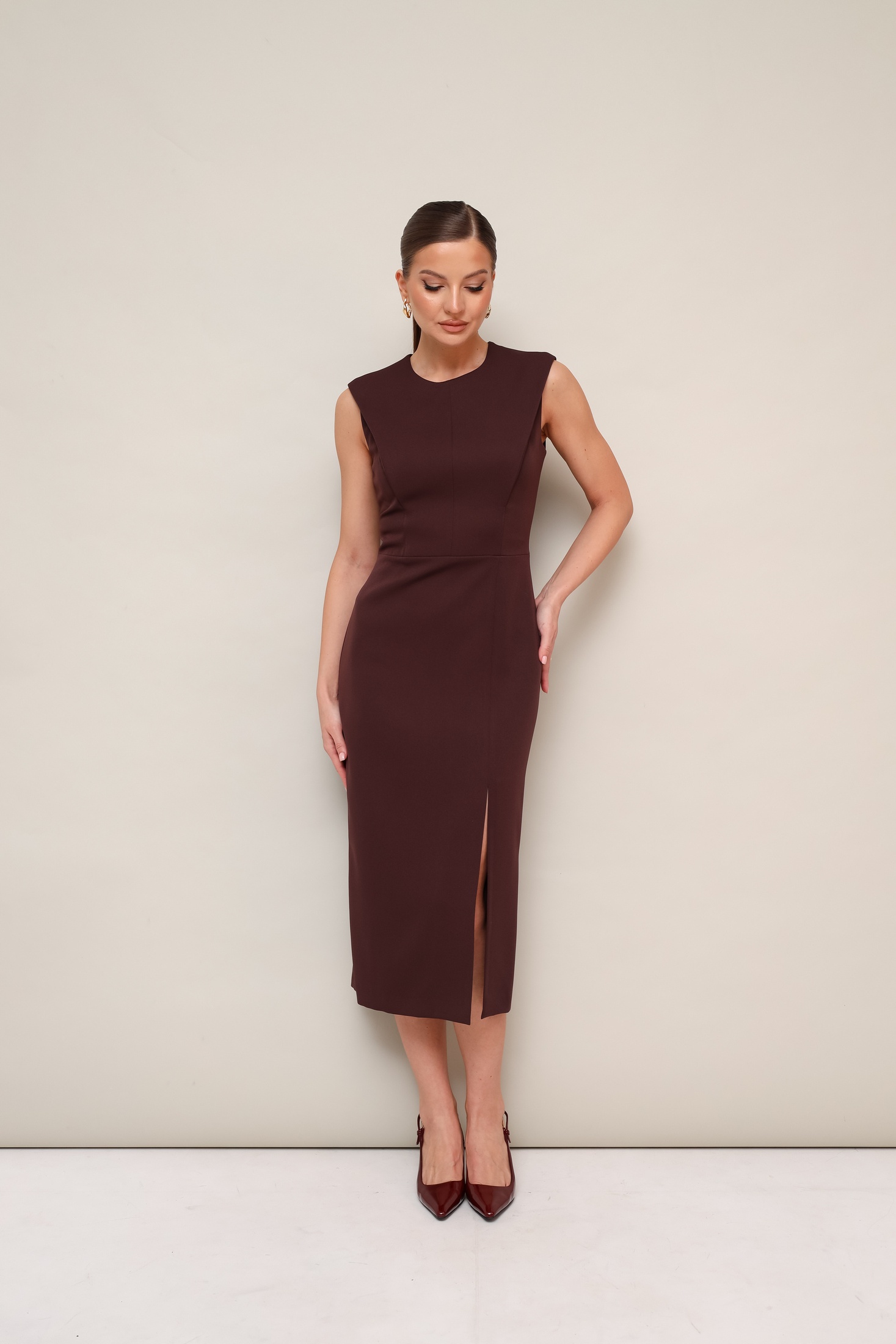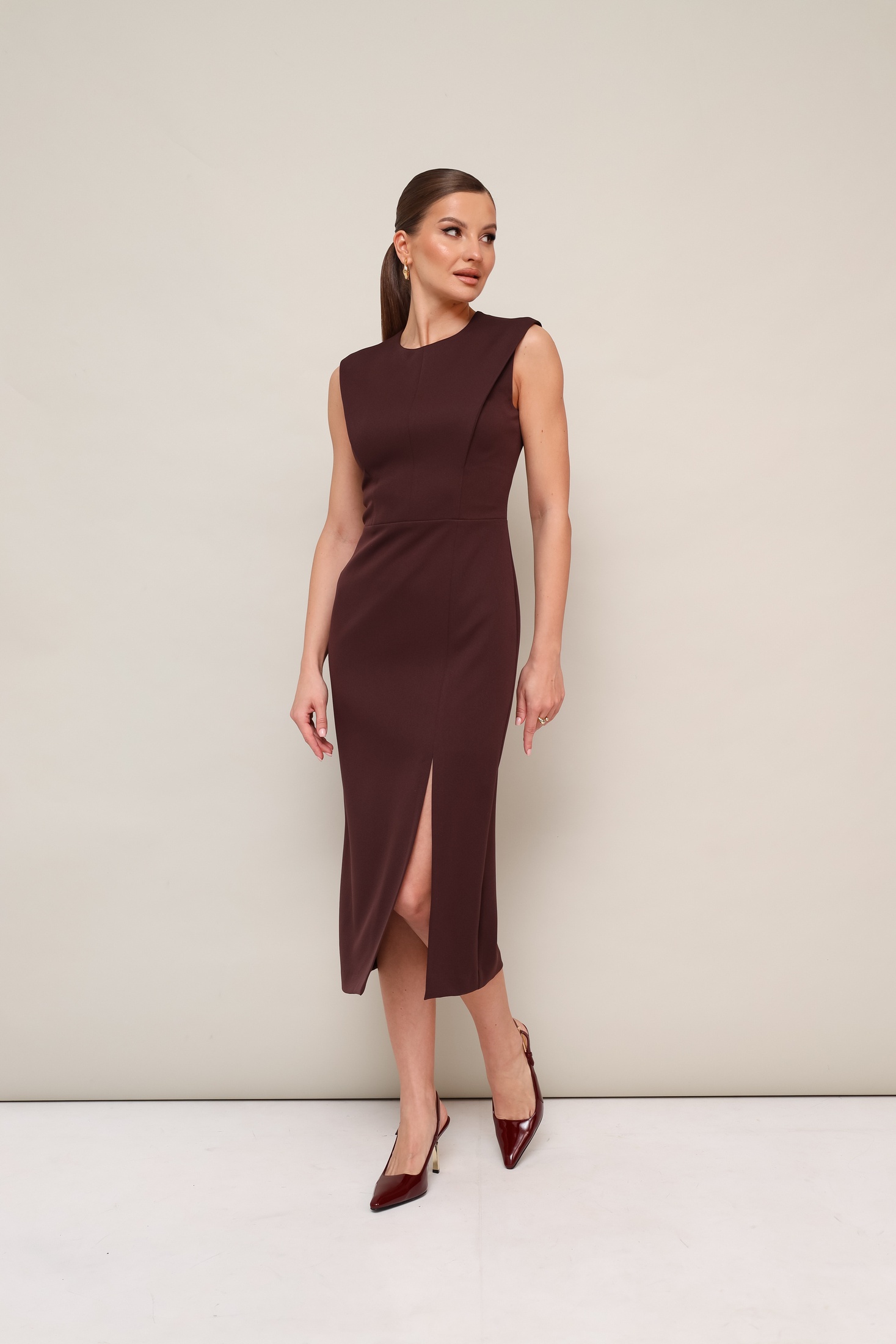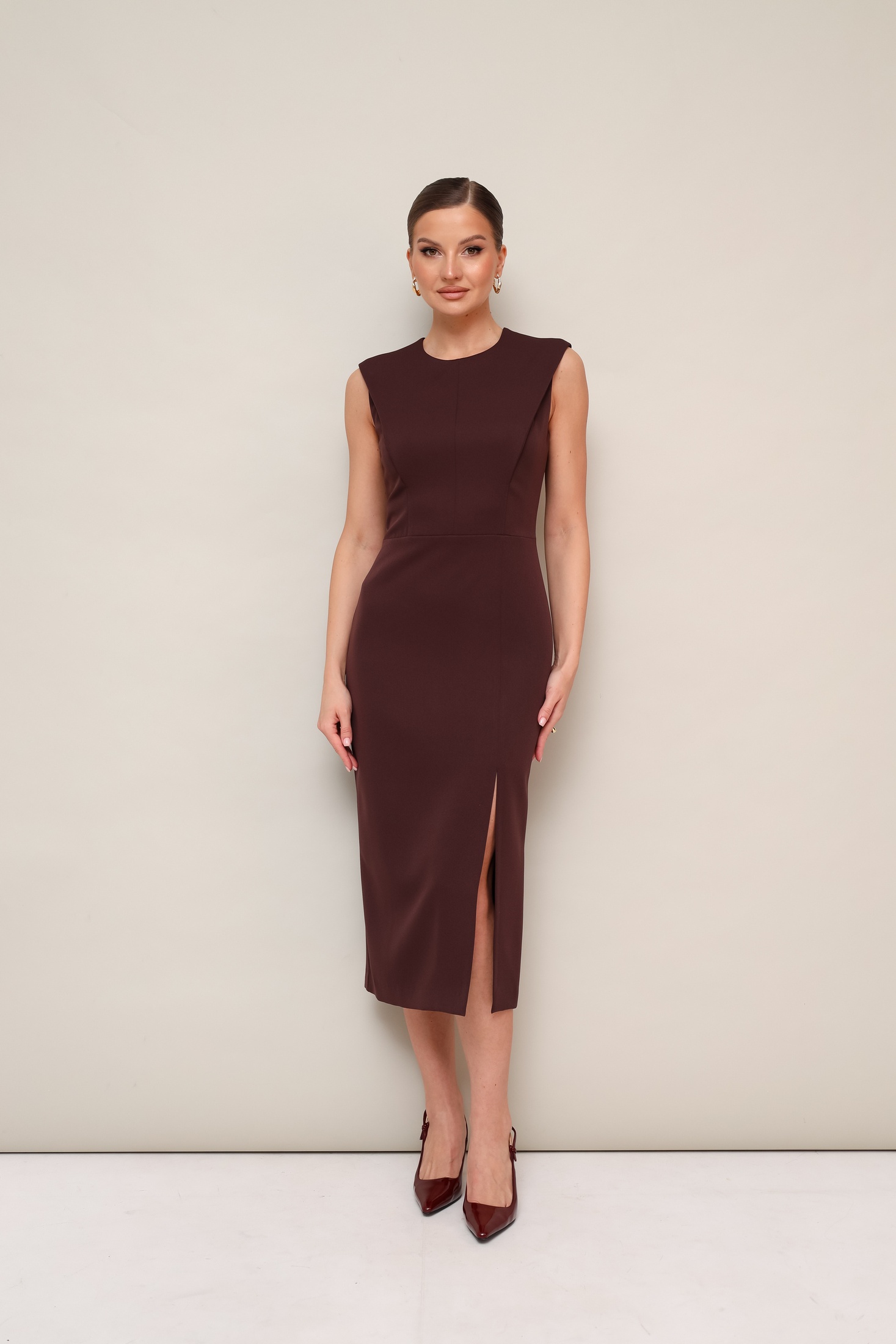 Платье 11-376-6 Pur Pur — это стильное решение для женского гардероба. Коллекция бренда Pur Pur отличается изысканным дизайном и качеством. Платье выполнено из плательной ткани с добавлением спандекса, что обеспечивает идеальную посадку и комфорт. Приталенный силуэт с конструктивными складками в рельефах подчеркивает фигуру, а разрез на юбке добавляет изящности. Округлый вырез горловины и потайная молния на спине делают это платье удобным и практичным. Подкладка обеспечивает дополнительный комфорт. Это универсальное платье отлично подойдет для повседневного ношения или рабочего дня, благодаря своей лаконичности и мягкому коричневому цвету.