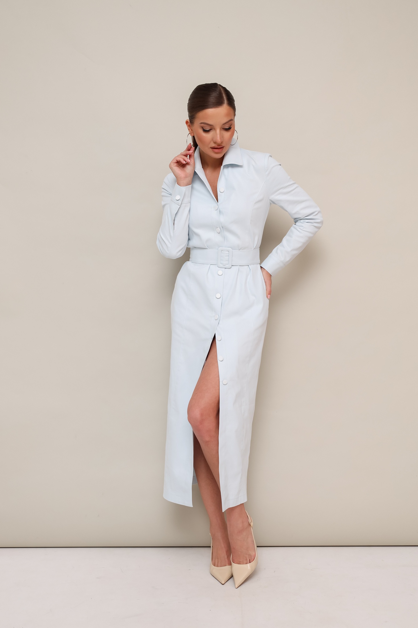 Платье 11-471 Pur Pur — стильное решение для современного гардероба. Коллекция бренда Pur Pur предлагает это силуэтное миди платье, выполненное из джинсовой ткани, состоящей из 65% хлопка, что гарантирует комфорт и дышащие свойства. Модель оснащена отложным воротником с цельнокроеной стойкой и центральной застёжкой на джинсовые пуговицы, добавляющей элегантности. Рельефы на переде и функциональные карманы в боковых швах подчёркивают практичность дизайна. Втачные рукава с манжетами на пуговицах добавляют классический акцент, а пояс с пряжкой позволяет подчеркнуть талию. Голубой цвет платья делает его универсальным для различных сезонов и поводов — будь то работа или прогулка.