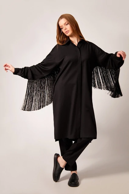 - по рукавам и спинке вставлена бахрома длиной 30 см