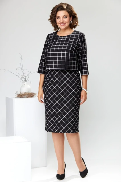 Платье 1-2422 черный + клетка-1 Romanovich style
