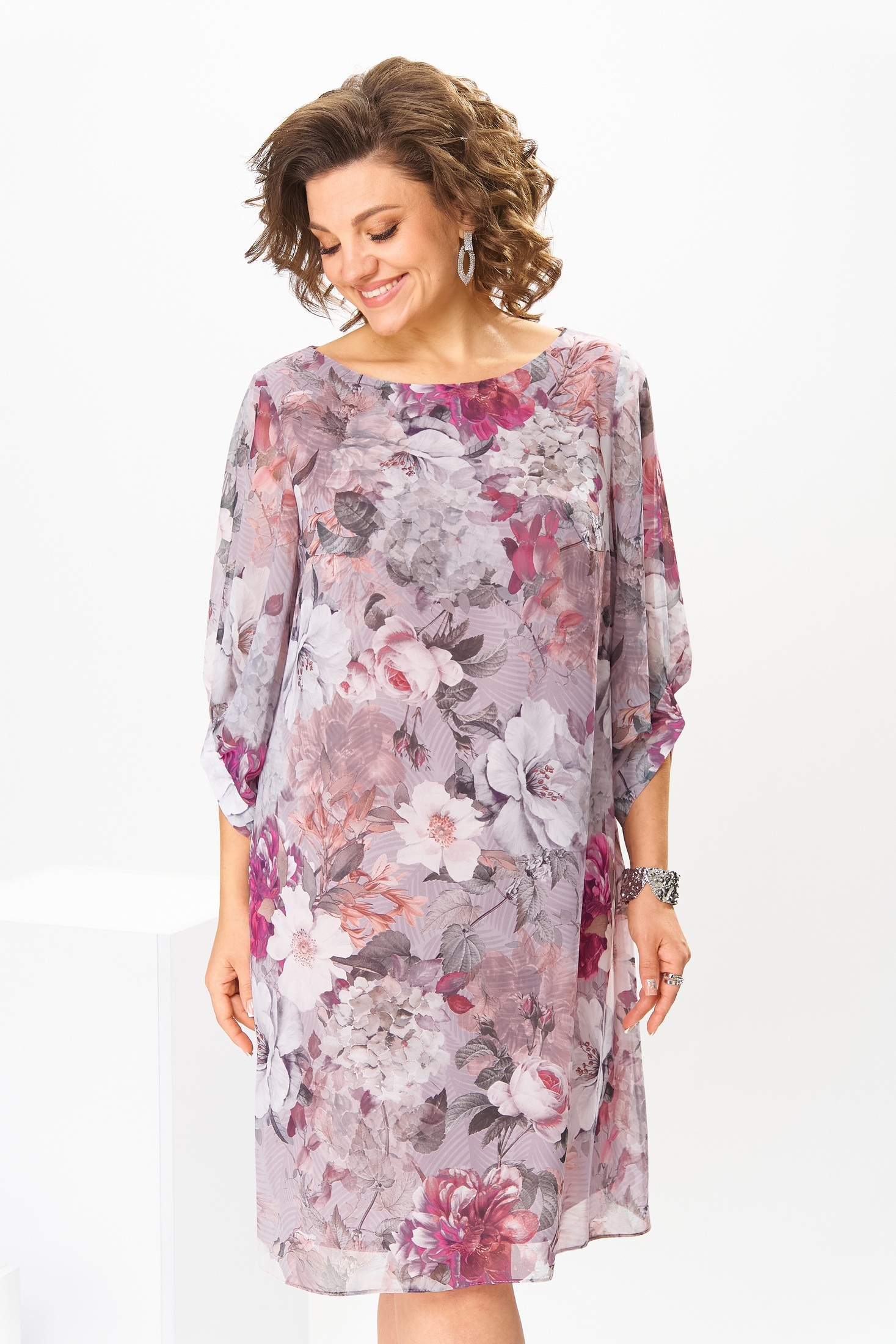 Платье 1-2792 розовый цветы Romanovich style