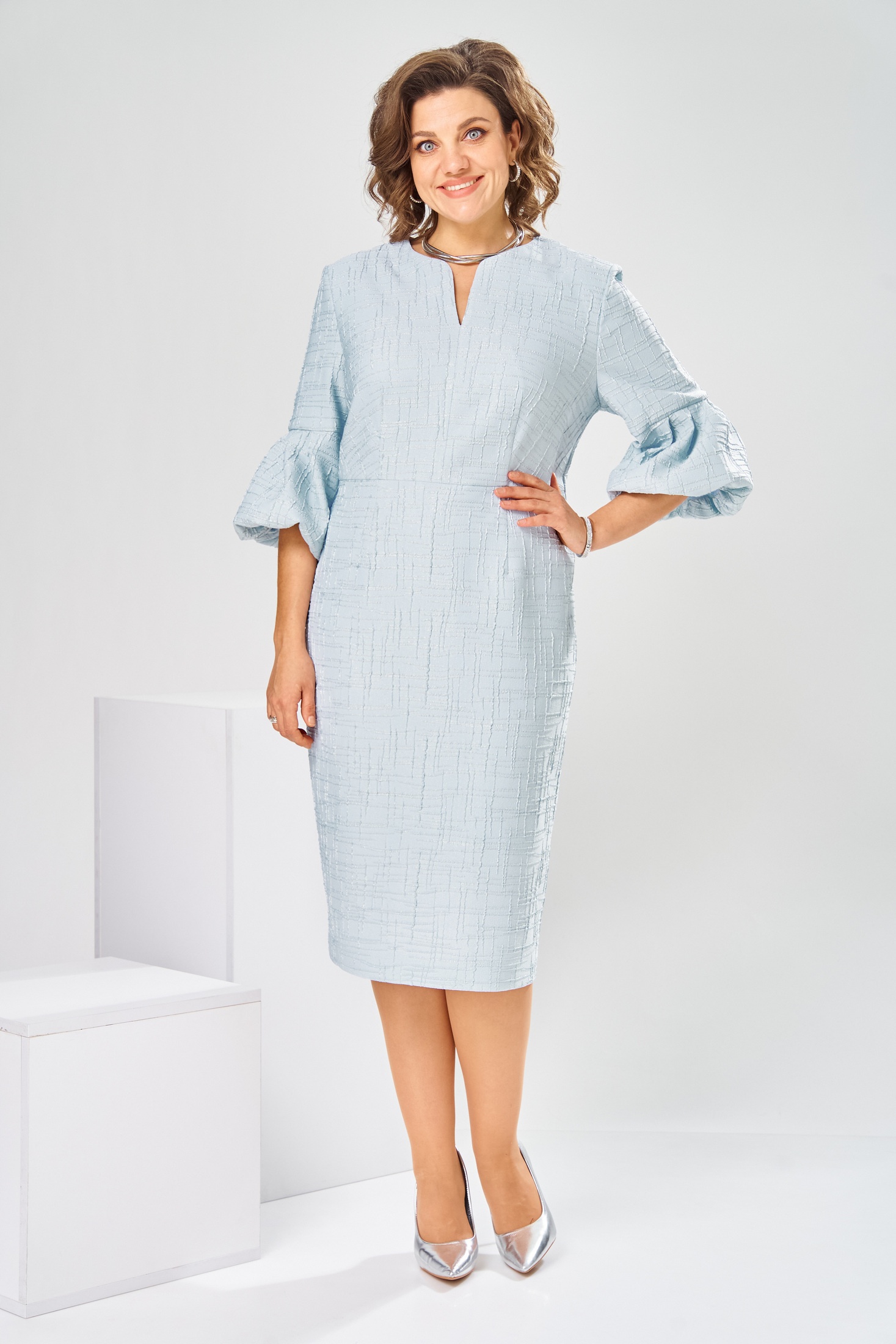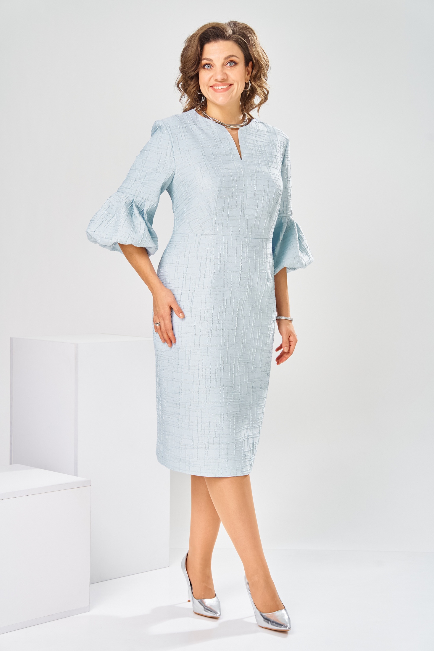 Платье 1-2809 голубой от Romanovich style — идеальный выбор для торжественных мероприятий. Коллекция бренда Romanovich style предлагает полу прилегающий силуэт, который подчеркнет фигуру. Платье выполнено из качественного материала с добавлением вискозы, обеспечивающей комфорт и дышащие свойства ткани. Длина ниже колена делает его универсальным на любое событие. Горловина с фигурным оформлением и рукава длиной 3/4 с оригинальными складками придают модный акцент. Скрытая молния на спинке и длина спинки 111 см обеспечивают идеальное облегание. Голубой цвет платья станет отличным цветовым решением для весны и лета.