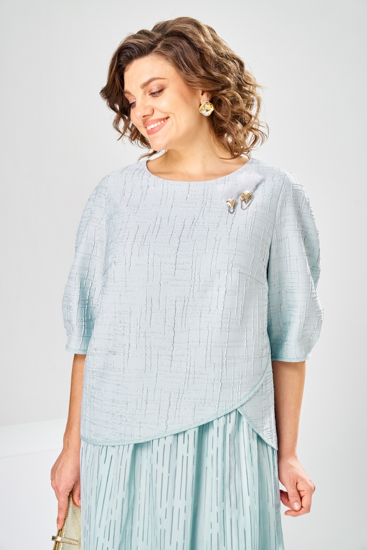 Платье 1-2913 голубой Romanovich style — это изысканный выбор для особых мероприятий. Коллекция бренда Romanovich style предлагает элегантное платье из смеси полиэстера и вискозы с небольшим добавлением спандекса, что обеспечивает комфорт и легкость в движении. Полу прилегающий силуэт с длиной ниже колена создаёт утончённый образ, а круглая горловина и потайная молния на спине добавляют функциональности и простоты. Платье в нарядном стиле, отлично подходит для весенне-летнего сезона и похода на вечеринки или праздники. Голубой цвет и съёмное украшение придают образу свежести и оригинальности. Длина спинки 126 см, длина рукава 42 см.