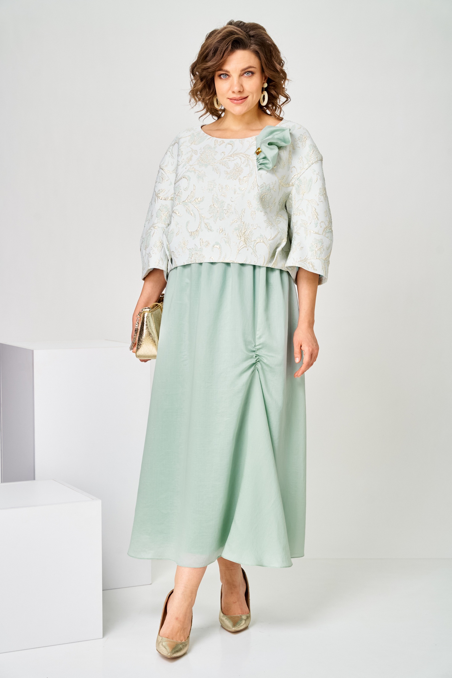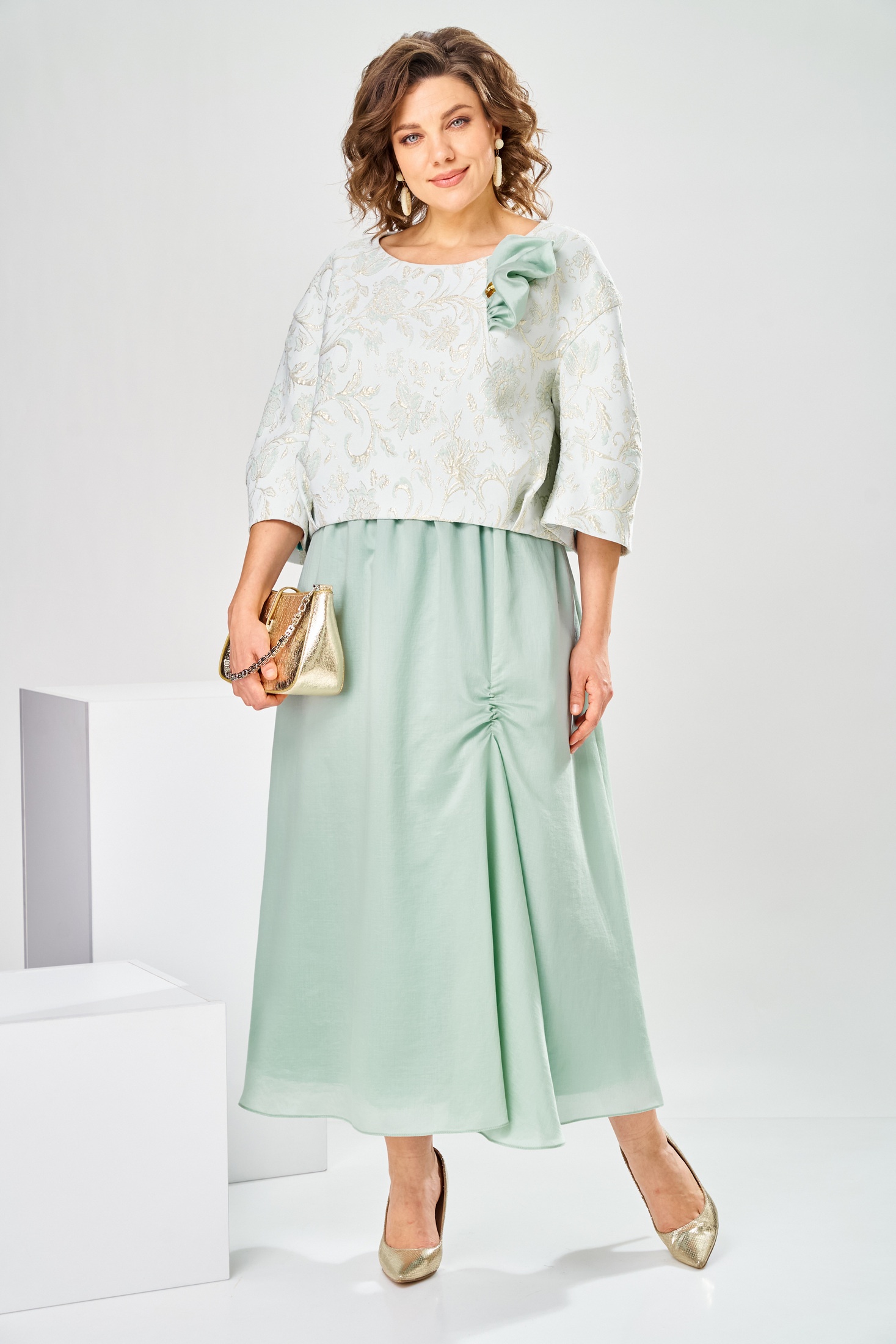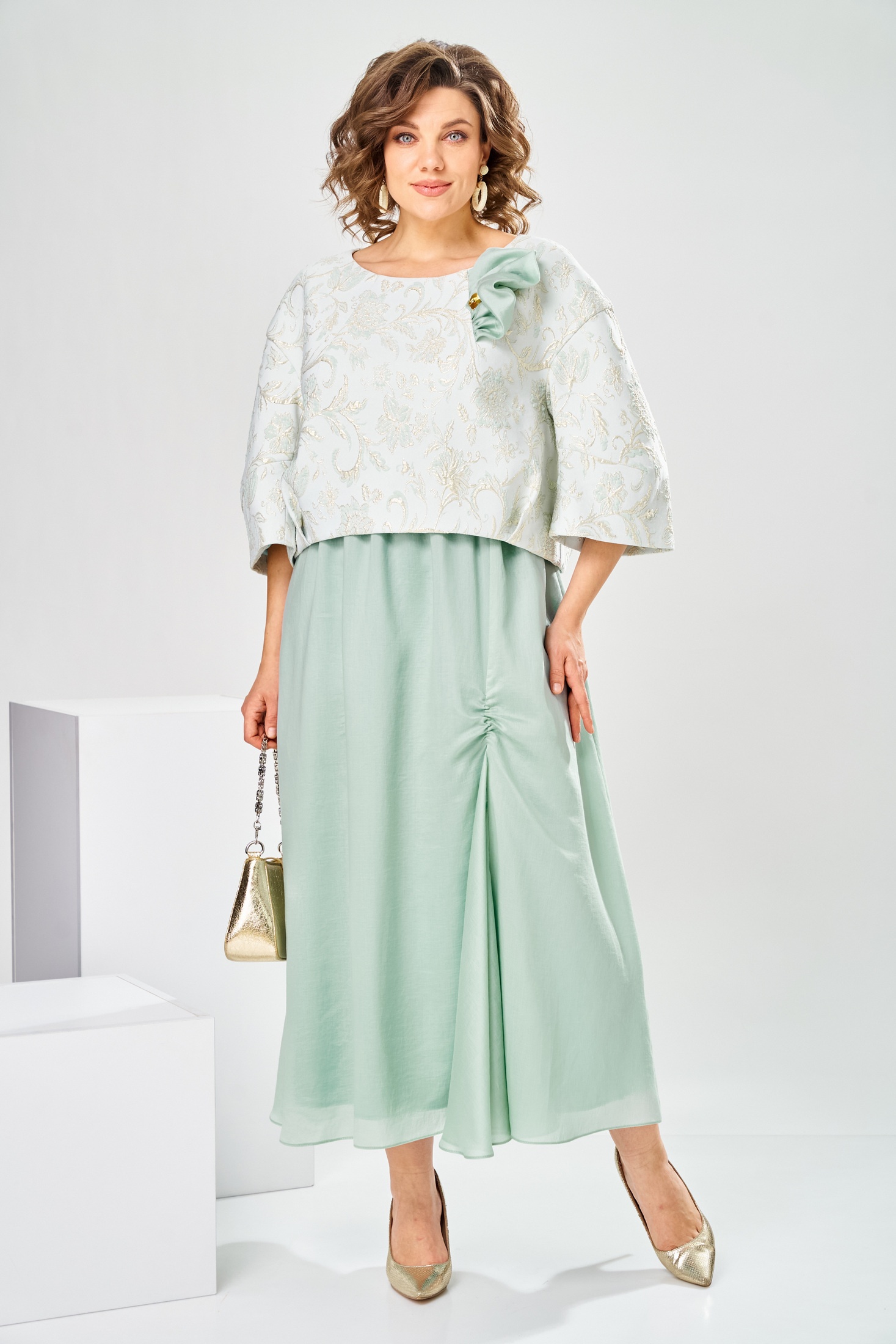 Платье 1-2915 мята от Romanovich style — изящный выбор для торжественных мероприятий. Коллекция бренда сочетает в себе стиль и комфорт благодаря уникальному материалу, составленному из полиэстера, вискозы и спандекса, что обеспечивает легкость и устойчивость к износу. Модель имеет отрезной фасон по линии талии и нижнюю часть расширенного кроя, создавая эффект имитации костюма. Особенности включают втачной декор с пуговицей, круглый ворот и потайную тесьму-молнию на спине. Спущенные плечи и рукав длиной 3/4 дополнены локтевыми вытачками для комфорта. Длина изделия по спинке составляет 130 см. Платье представлено в мягком мятном оттенке, идеально подходящем для весенне-летнего сезона.