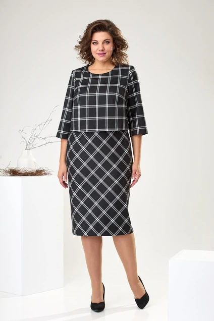 Платье 1-2422 черный + клетка Romanovich style
