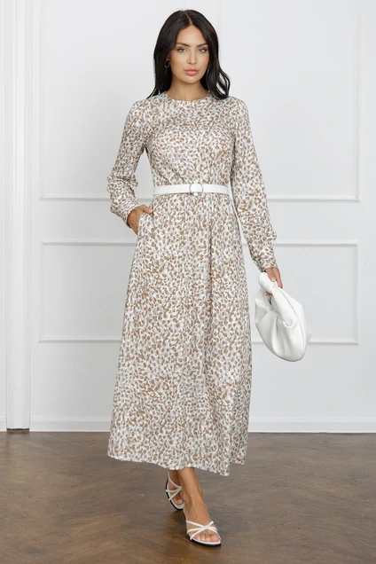 Это платье из вискозы с оригинальным принтом станет прекрасным выбором для тех, кто ценит стиль и комфорт. Мягкая и приятная на ощупь ткань обеспечивает удобство в носке, а уникальный принт добавляет индивидуальности и выразительности вашему образу. Платье имеет элегантный крой, который подчёркивает фигуру и создаёт женственный силуэт. Идеально подходит как для повседневных выходов, так и для особых случаев, легко комбинируется с различными аксессуарами и обувью.