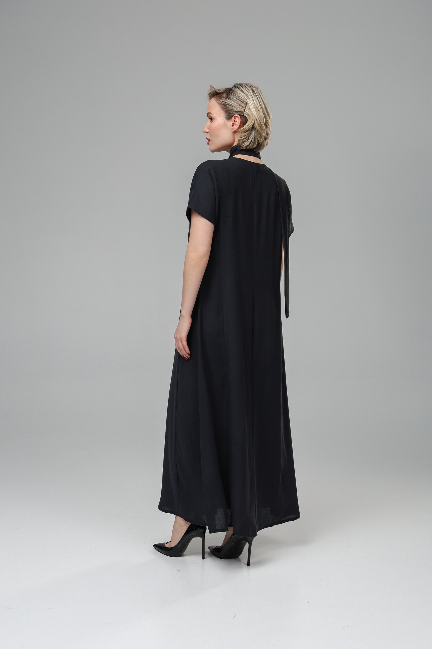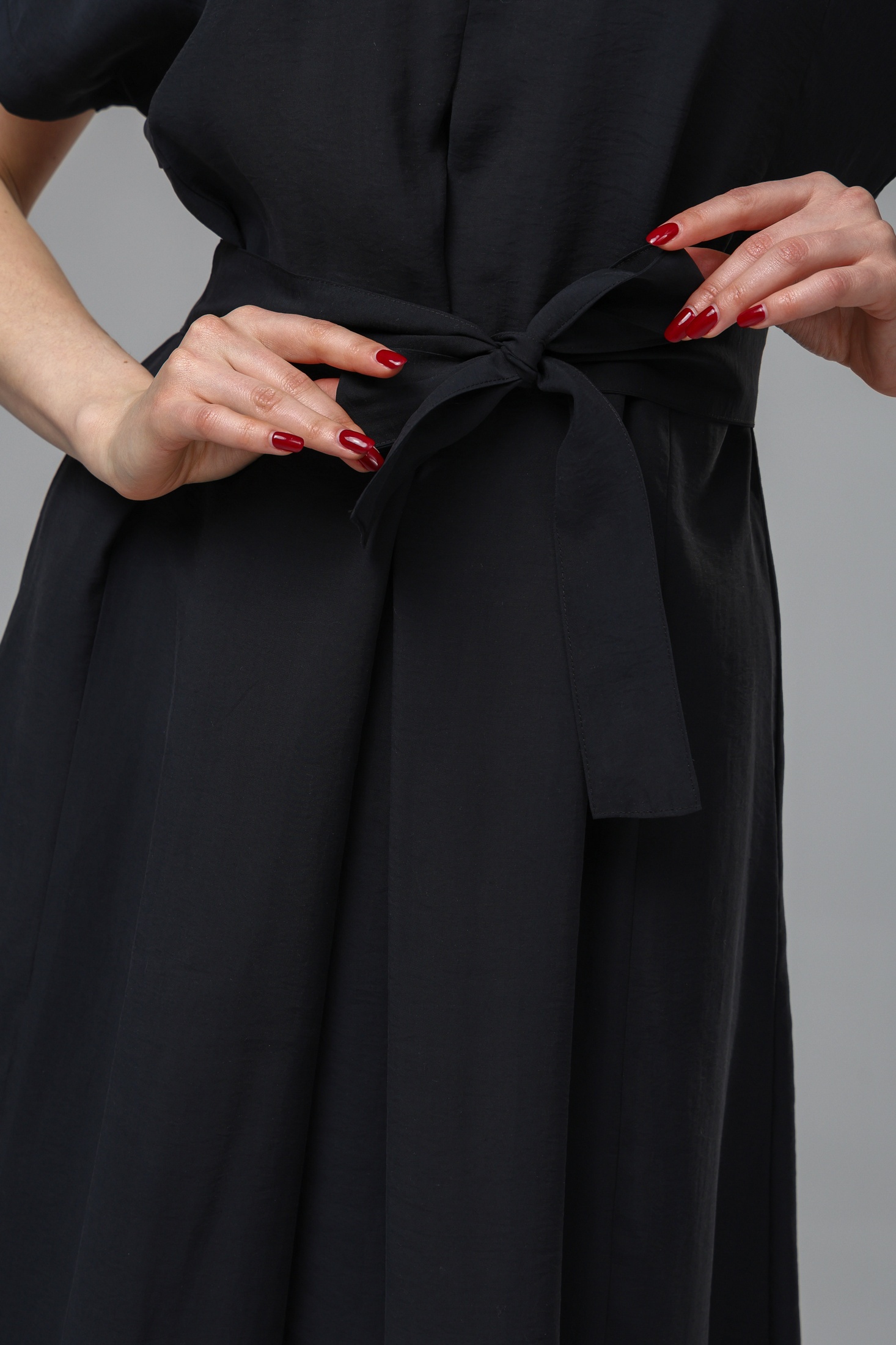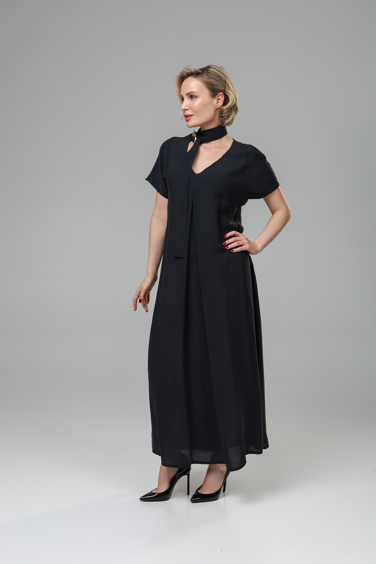 Платье РТ0144-ВИ4 черный от Romgil представляет собой идеальное сочетание стиля и комфорта. Коллекция бренда Romgil воплощает современные тренды и высокое качество. Изготовлено из легкой вискозной ткани с добавлением полиэстера, оно обеспечивает комфортную носку в любое время года. Платье-макси с V-образным вырезом и короткими рукавами подходит для создания повседневных и вечерних образов. Черный цвет придает классический и универсальный вид, а завязка на поясе элегантно подчеркивает талию. Это изделие станет прекрасным выбором для разнообразных мероприятий — от прогулок до торжественных событий.