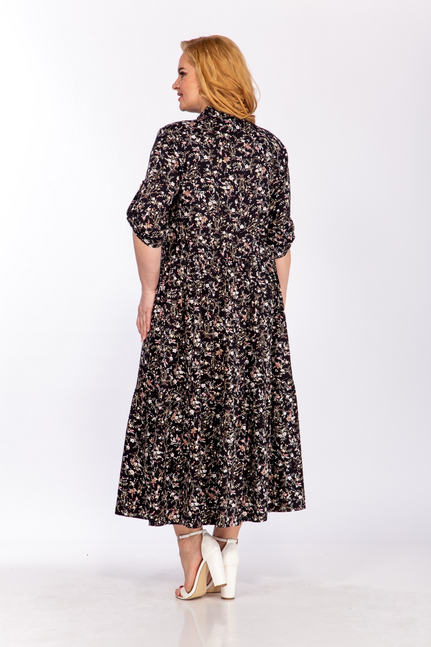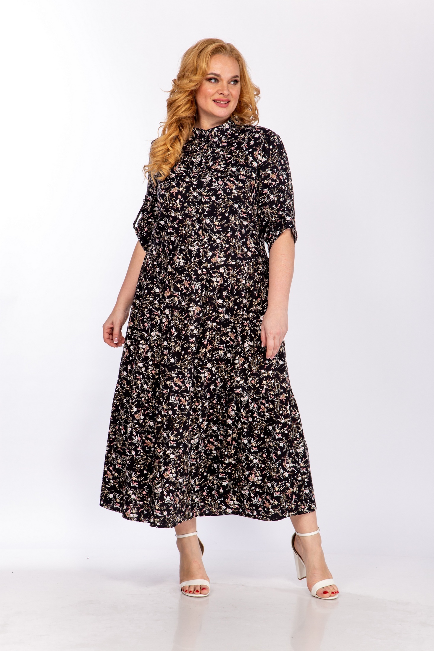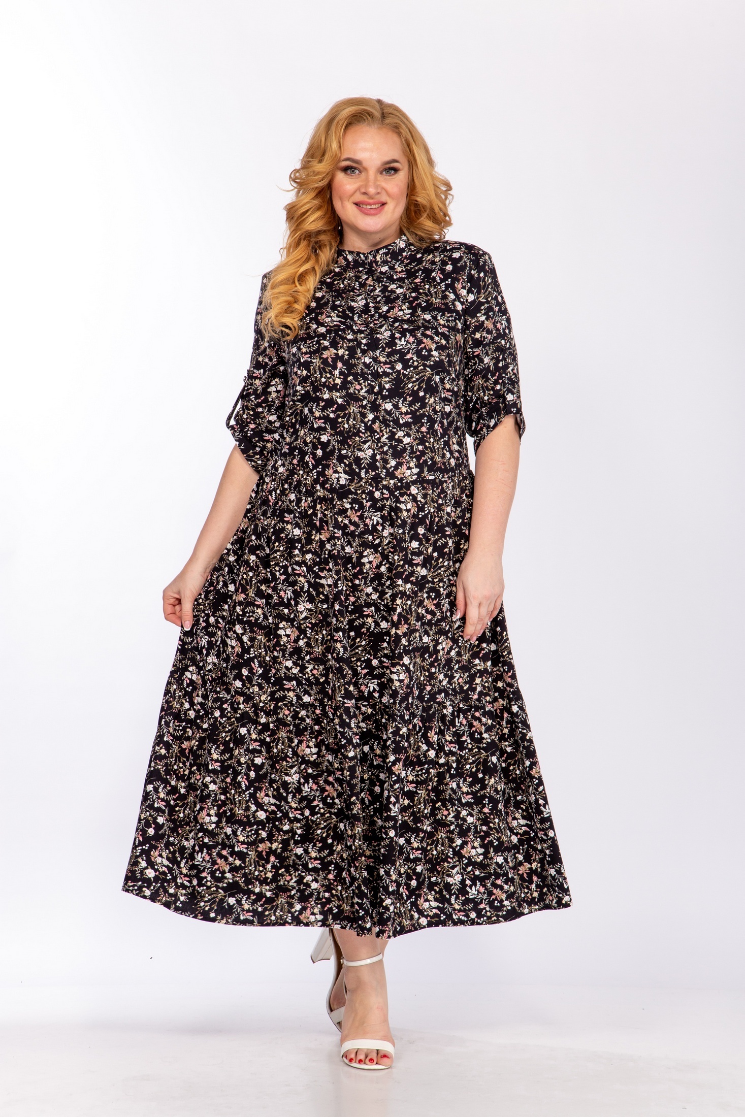 Платье 268 черный СиБон — это изысканный выбор для современных женщин. Коллекция бренда СиБон дарит это полуприлегающее платье с втачными одношовными рукавами, которые драпируются патой с застёжкой на пуговицу. Воротник-стойка добавляет стильности, а отрез на талии выгодно подчёркивает фигуру. Платье выполнено из штапеля на 100% из вискозы, обеспечивая комфорт летом и весной. Верх переда украшен нагрудными вытачками, а низ состоит из двух ярусов оборок. Длина по спинке составляет 128 см. В цветочном рисунке на черном фоне это платье станет отличным выбором для повседневного ношения и праздничных событий.