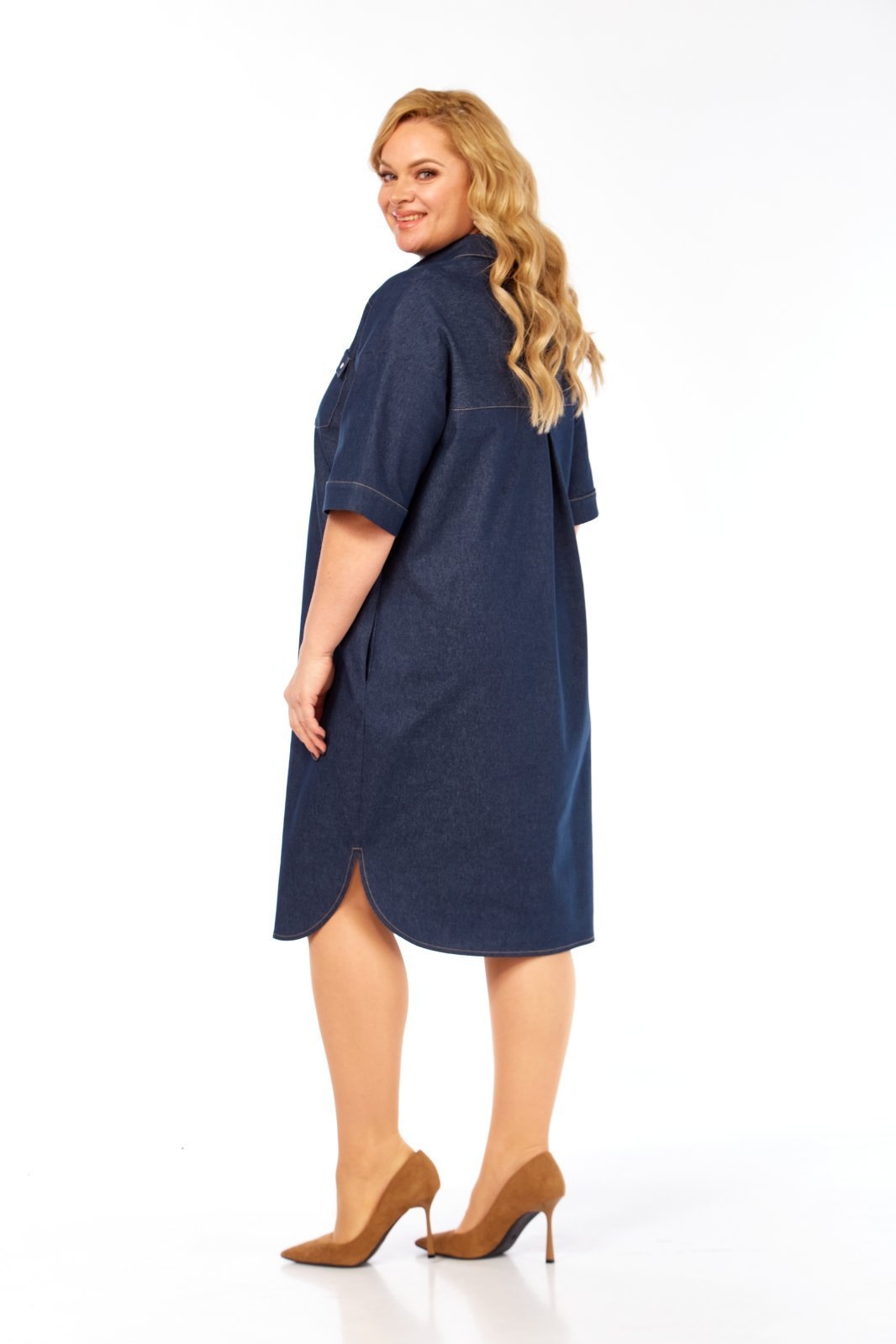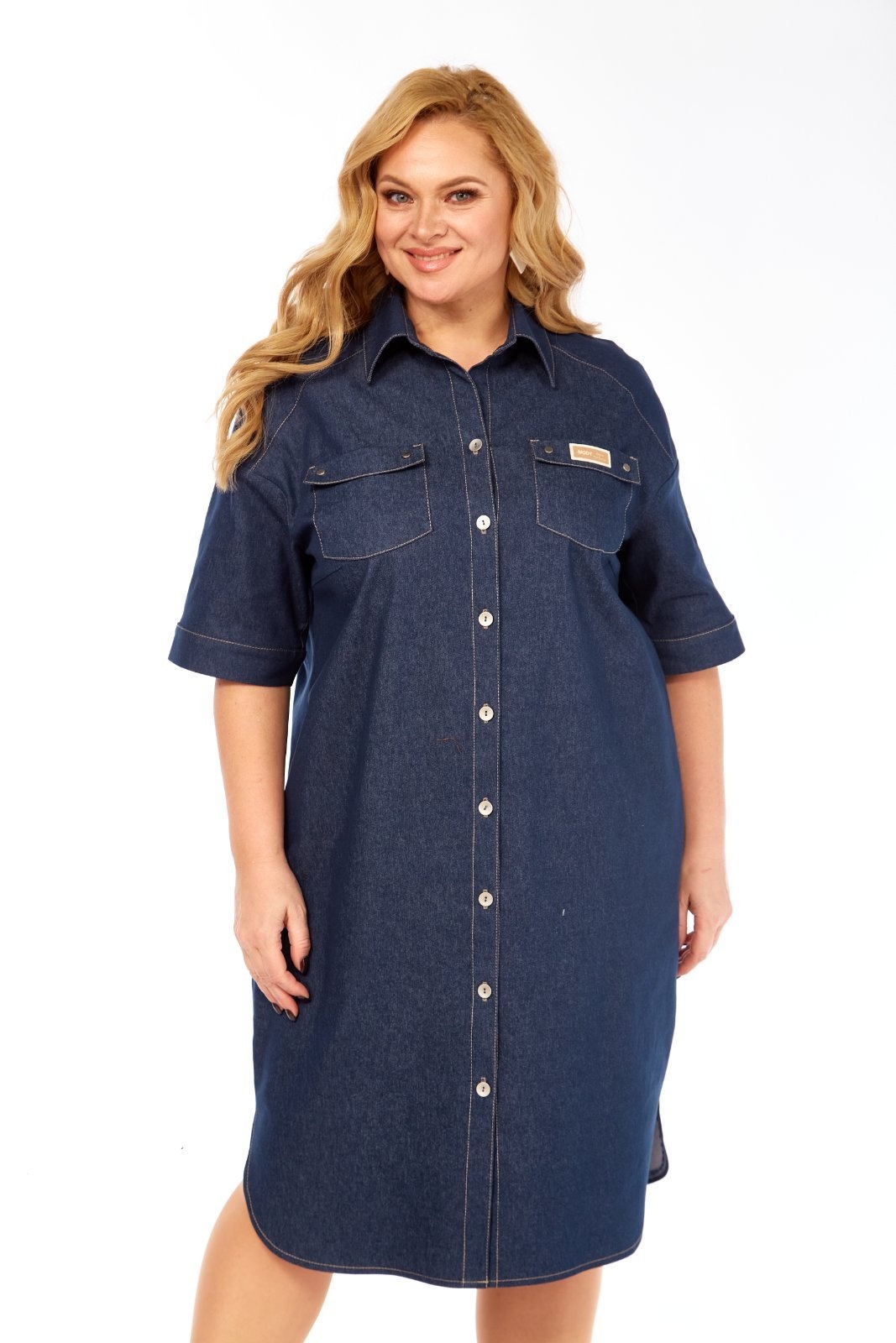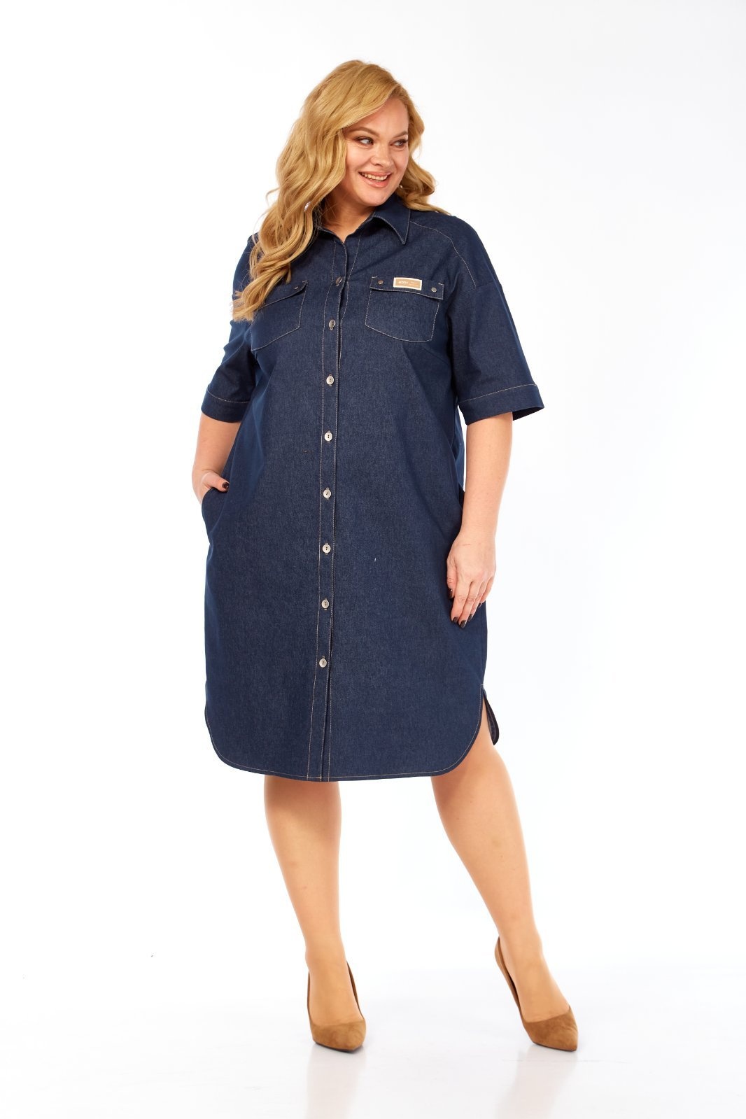 Платье 379 СиБон от коллекции бренда СиБон — отличный выбор для любителей комфорта и стиля. Выполнено из ткани костюмно-плательной группы, оно сочетает в себе вискозу, полиэстер и спандекс, обеспечивая приятные тактильные ощущения и лёгкость движения. Полуприлегающий силуэт с рубашечным воротником и застёжкой на пуговицы дополняется отрезными кокетками и декоративными накладными карманами. Короткий рукав со спущенной линией плеча делает его подходящим для тёплых сезонов. Потайные карманы на бёдрах и закруглённые разрезы по бокам добавляют функциональности и стильности. Лаконичный тёмно-синий цвет и длина 105 см делают это платье универсальным вариантом для повседневной носки и рабочих встреч.