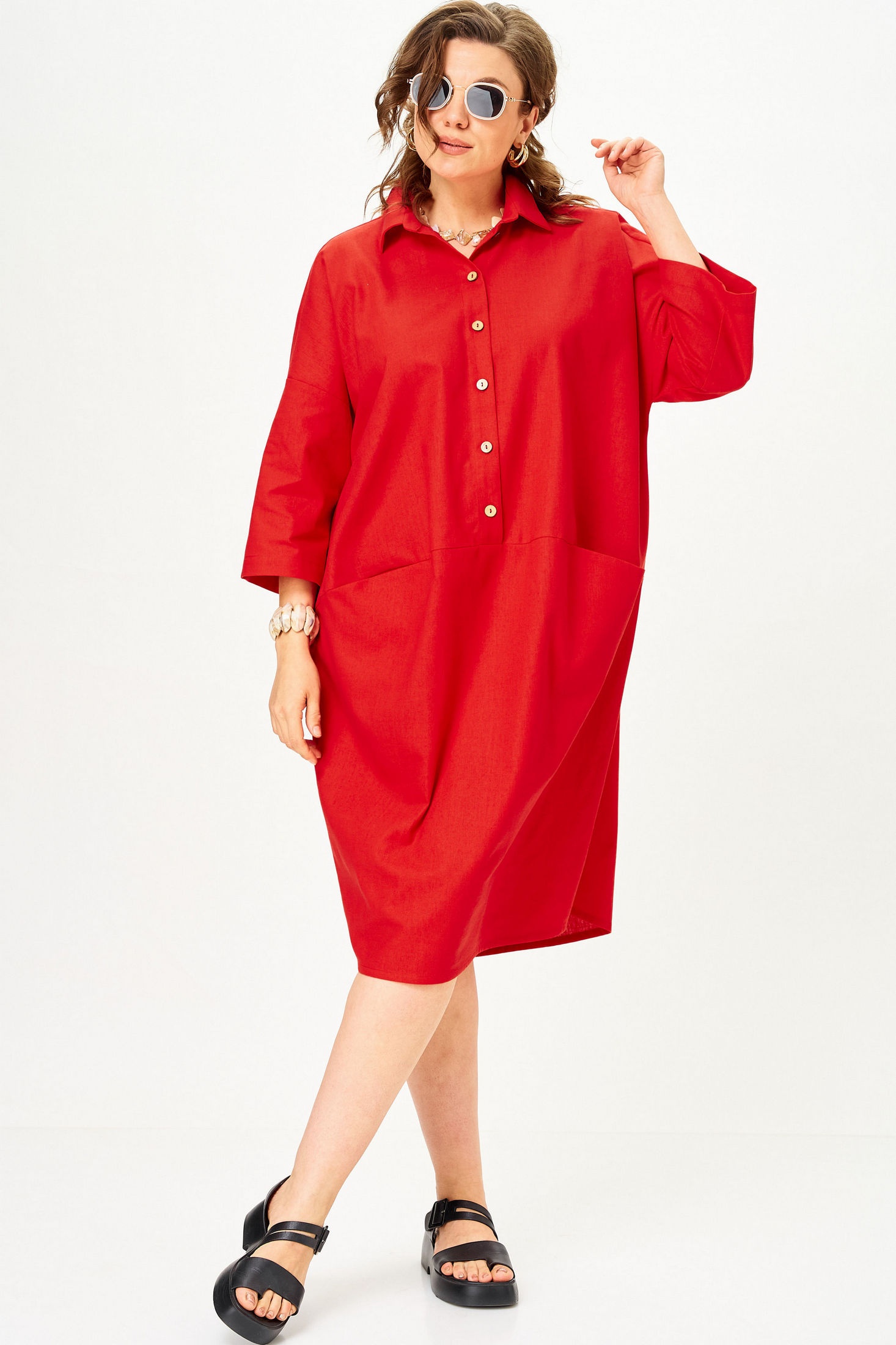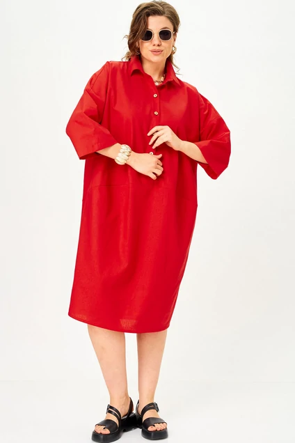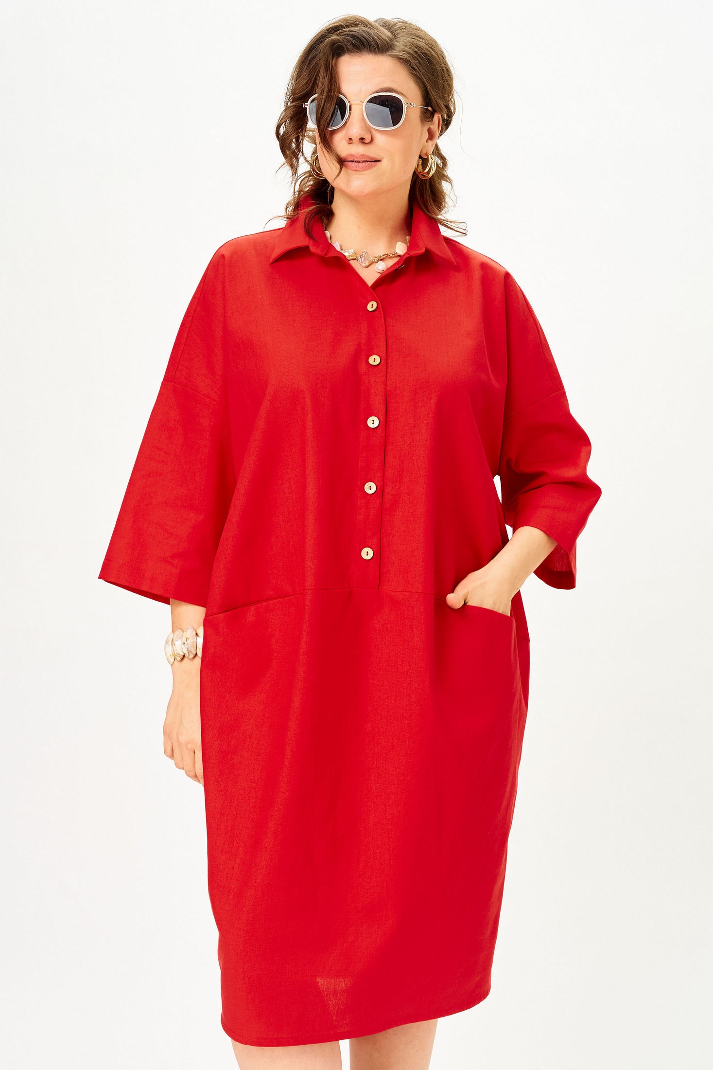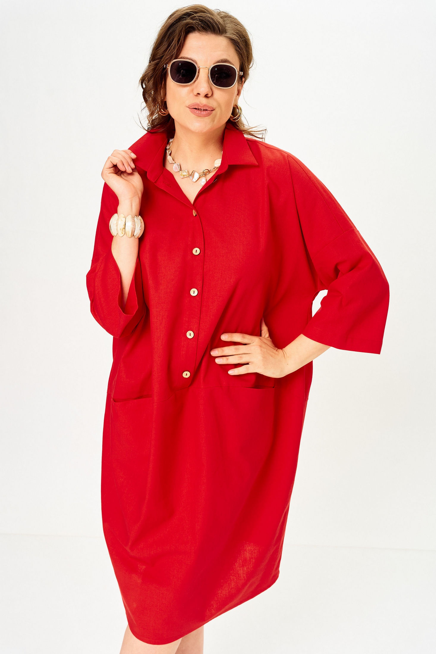 Платье 11329 красный SOVA — это стильное летнее решение для жарких дней. Коллекция бренда SOVA отличается изысканностью и комфортом. Платье выполнено из 100% льна, что обеспечивает максимальную легкость и воздухопроницаемость, идеально подходящую для летнего сезона. Свободный силуэт оверсайз в модном стиле «баллон» позволяет чувствовать себя комфортно и свободно. Яркий красный цвет добавляет настроению свежести и энергии. Длинные рукава 3/4 придают образу непринужденности, а универсальная длина миди делает платье подходящим как для повседневного использования, так и для особых случаев.
