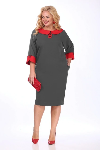Платье женское силуэта «летучая мышь» изготовлено из текстильного полотна с легким стрейчевым эффектом. В качестве компаньона – контрастная отделка. Рукав ¾ с отделкой в виде манжеты закрепленного пришивной пуговицей. Горловина украшена воротничком и планкой из контрастной ткани, декорирована пуговицами. В боковых швах функциональные карманы. По среднему шву спинки разрез. Ткань практически не мнется а также не линяет при стирки. Это платье можно использовать как для повседневной носки так и для праздников.