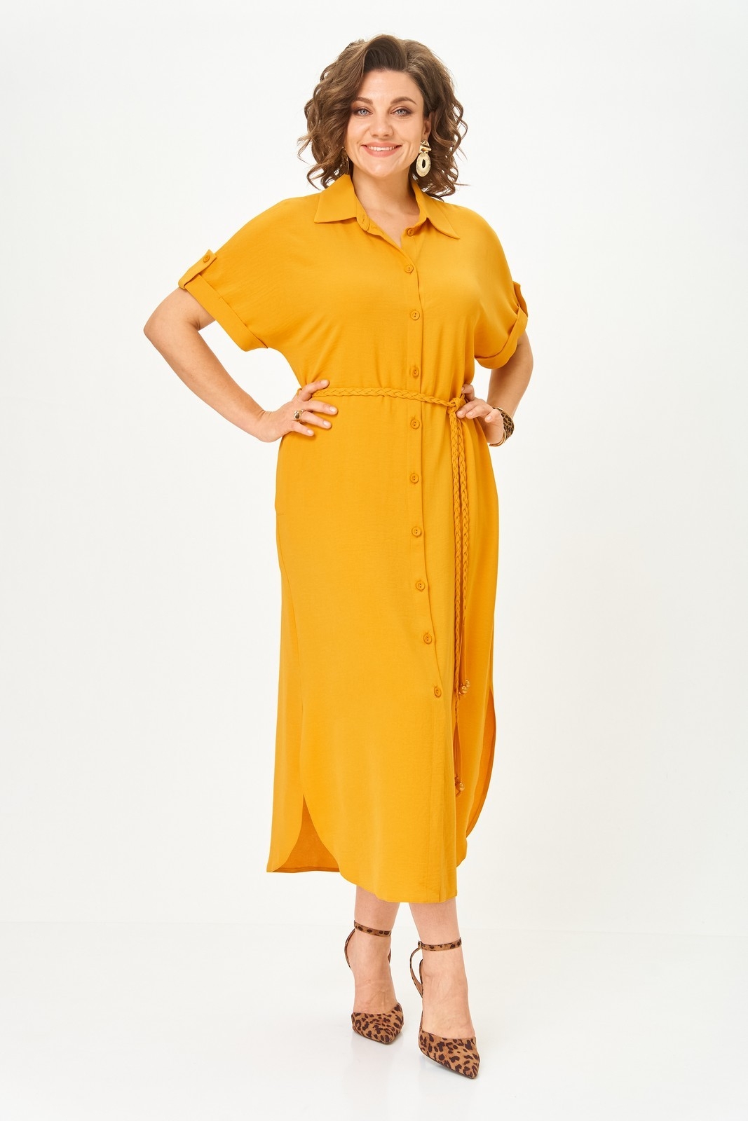 Платье 1699 горчица от коллекции бренда Svetlana Style сочетает в себе стиль и практичность. Изготовлено из полиэстера с добавлением вискозы и спандекса, оно обеспечивает комфорт и свободу движений. Прямой силуэт и спущенные плечи подчеркивают непринужденный стиль, а пояс на талии акцентирует фигуру. Фигурный низ с разрезами и длина по спинке 132 см добавляют оригинальности. Цвет горчицы привлекает внимание и отлично подходит для любого сезона, будь то весна или осень. Центральная застежка на пуговицы и отложной воротник делают платье подходящим для работы и отдыха. Удобные карманы в боковых швах добавляют функциональности.