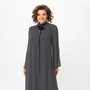 Платье женское А – силуэта с втачным рукавом. По переду средний шов и кокетка. По горловине воротник стойка. По спинке средний шов с застежкой на потайную молнию. Рукав длиной ¾ с притачной манжетой.