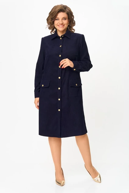 Платье женское полуприлегающего силуэта с втачным рукавом станет идеальным выбором для создания стильного и комфортного образа. Застежка центральная на петли и пуговицы. По горловине отложной воротник на стойке. По переду в нижней части накладные карманы с клапаном, по линии груди вытачки, по линии талии пата с застежкой на петлю и пуговицу. По спинке кокетка в верхней части, складка из-под кокетки, по линии талии широкая эластичная тесьма. В боковых швах обработаны разрезы.