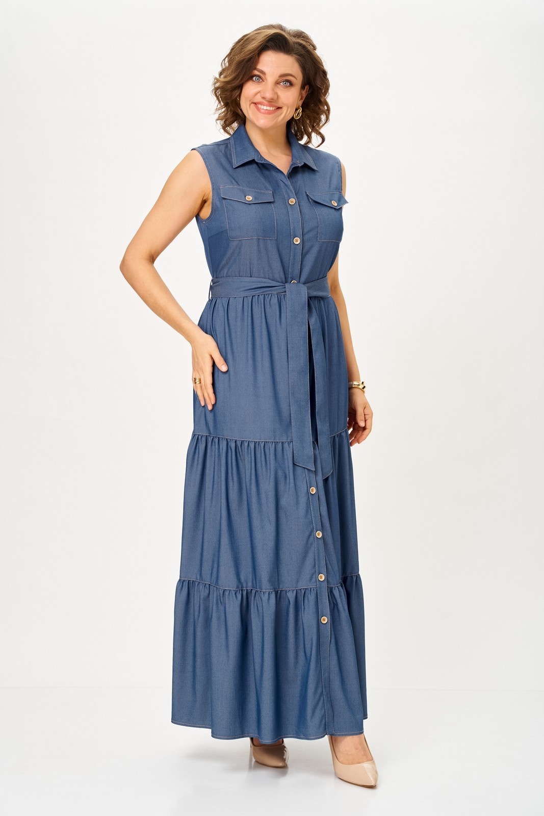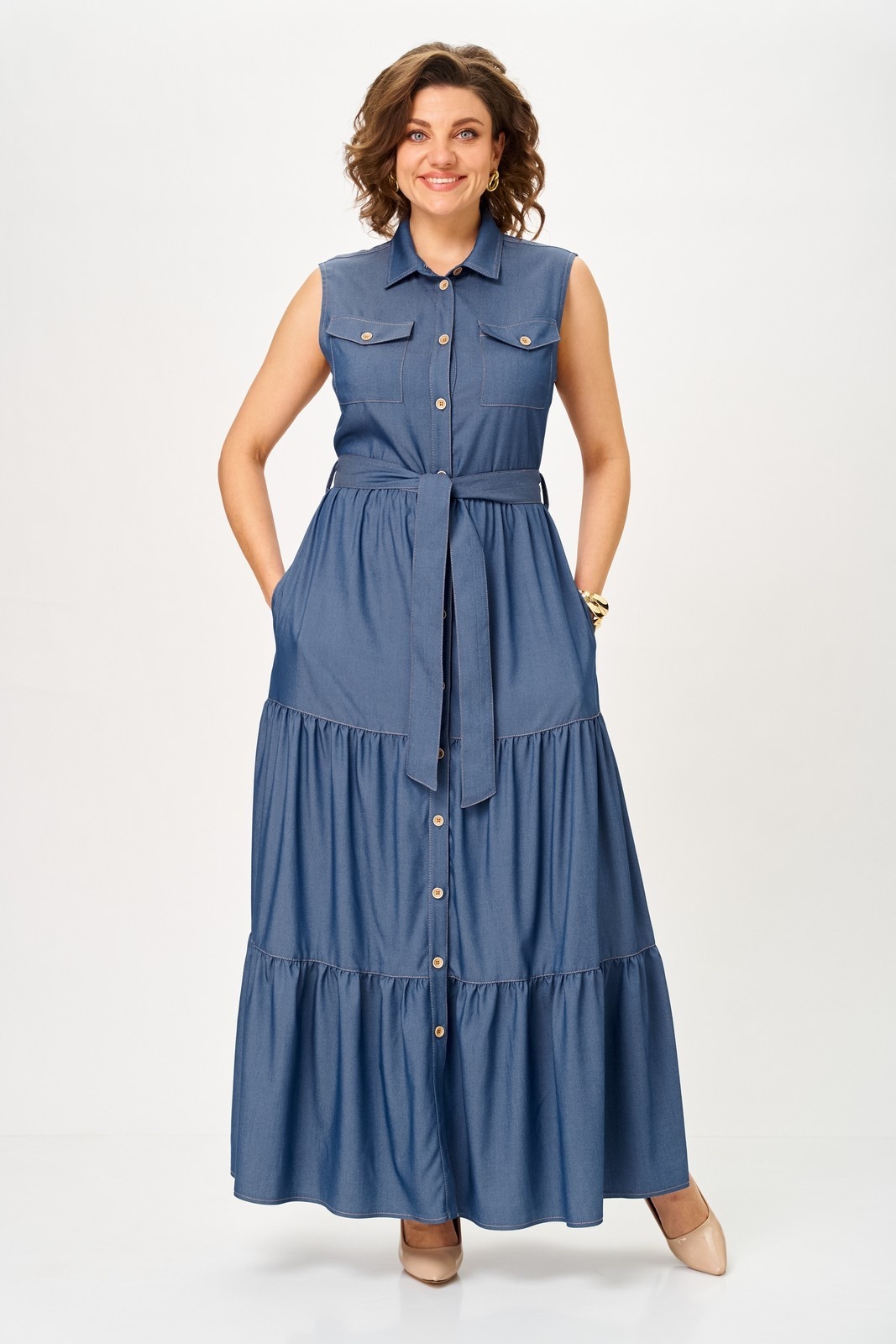 Платье 2334 Svetlana Style — идеальный выбор для тех, кто ценит комфорт и стиль. Коллекция бренда Svetlana Style предлагает изысканное платье из вискозы с добавлением полиэстера, что гарантирует мягкость и лёгкий уход. Фасон макси с расклешённым низом и поясом подчеркивает элегантность и женственность. Практичные накладные карманы с клапанами и центральная застежка на пуговицы добавляют функциональности. Воротник на стойке и оборки придают изделию модный акцент. С длиной 142 см, это платье подходит для повседневного использования в тёплые сезоны. Глубокий синий цвет делает его универсальным в комбинации с различными аксессуарами.