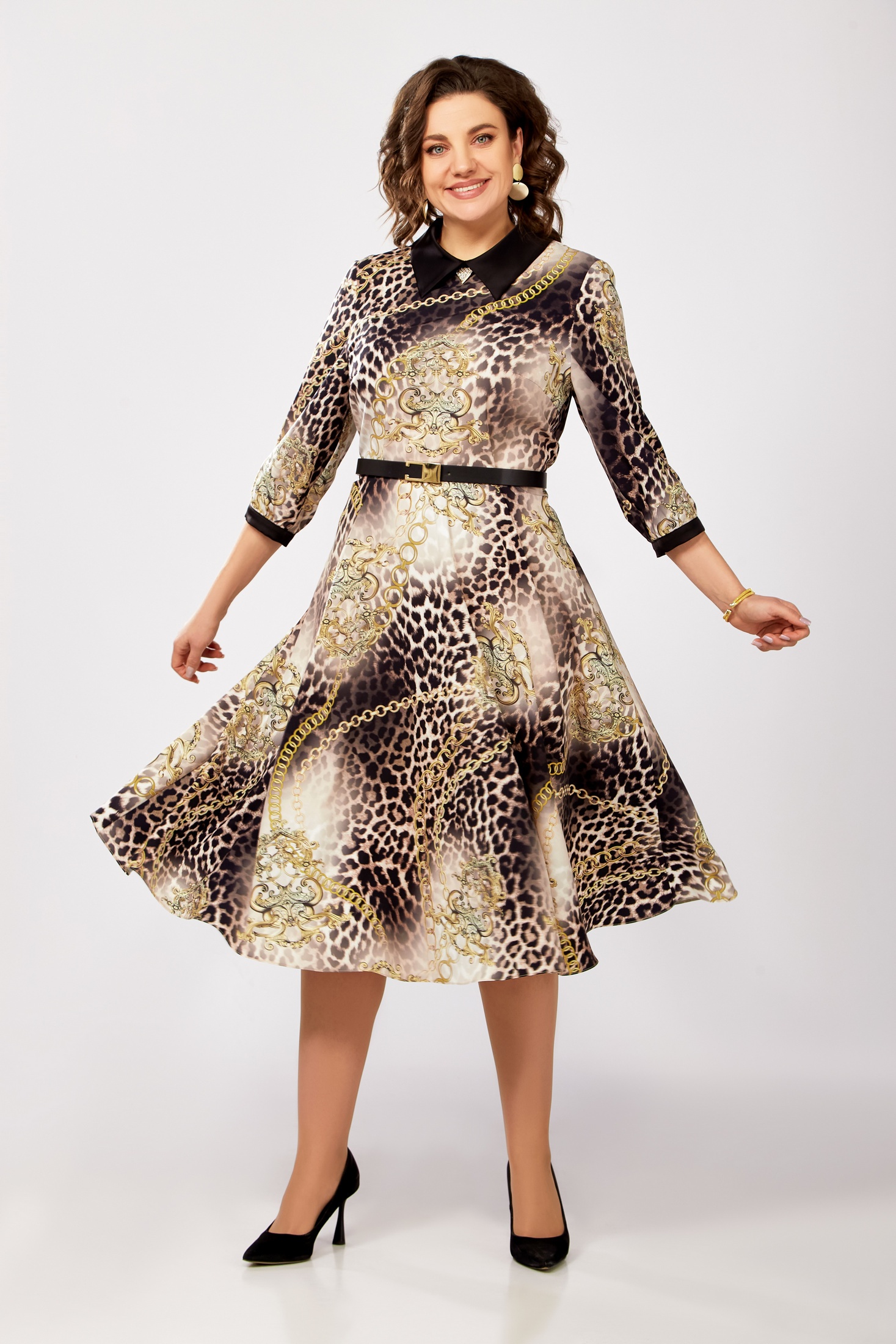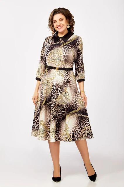 Платье 804-2 Swallow из коллекции бренда Swallow представляет собой идеальный выбор для элегантных повседневных образов. Изготовлено из вискозной ткани, это платье дарит комфорт и легкость в носке. Фасон с отрезной линией талии и расклешенной юбкой создает женственный силуэт. Особенностью платья являются нагрудные и талиевые вытачки, а также отложной воротник рубашечного типа из отделочной ткани. Рукава 3/4 со сборкой и манжетами добавляют изысканности. Спинка оформлена потайной тесьмой-молнией и декоративными пуговицами. В комплекте идет ремень с декоративной пряжкой и брошь. Длина платья по спинке для размеров 50-54 составляет 112 см, а для размеров 56-60 — 117 см. Это платье прекрасно подойдет для осеннего сезона и станет воплощением вашего неповторимого стиля.