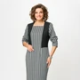 Платье длиной миди, выполнено из шифона на трикотажной подкладке. Лиф отрезной по линии талии. Талия регулируется эластичной тесьмой (резинкой). Нижняя часть платья А-силуэта. Подкладка верхней части платья на бретелях. Рукав втачной длинный, в нижней части собран на эластичные строчки, которые внизу образуют рюшу . Горловина округлой формы, по центру переда капелька с завязкой.