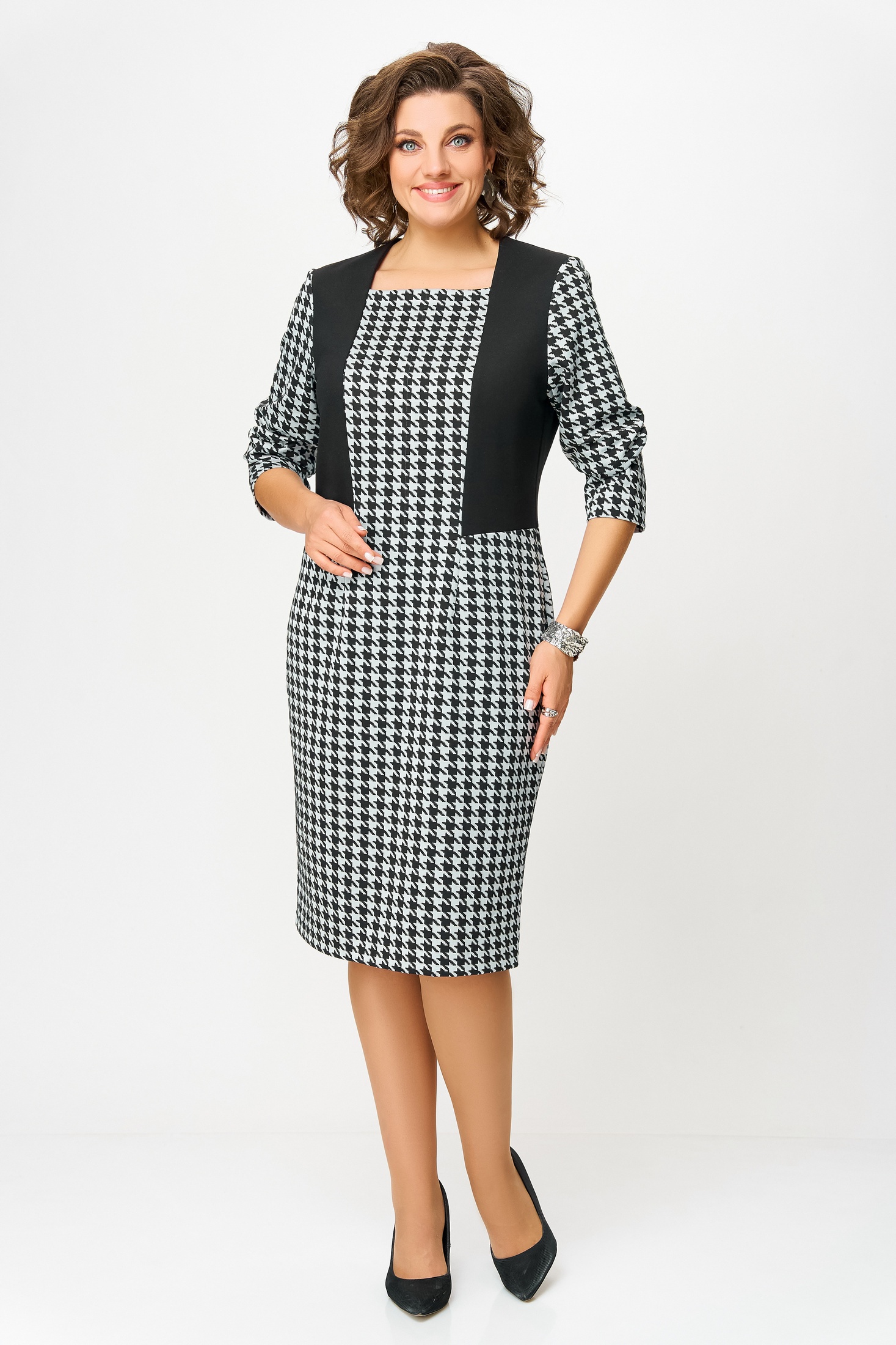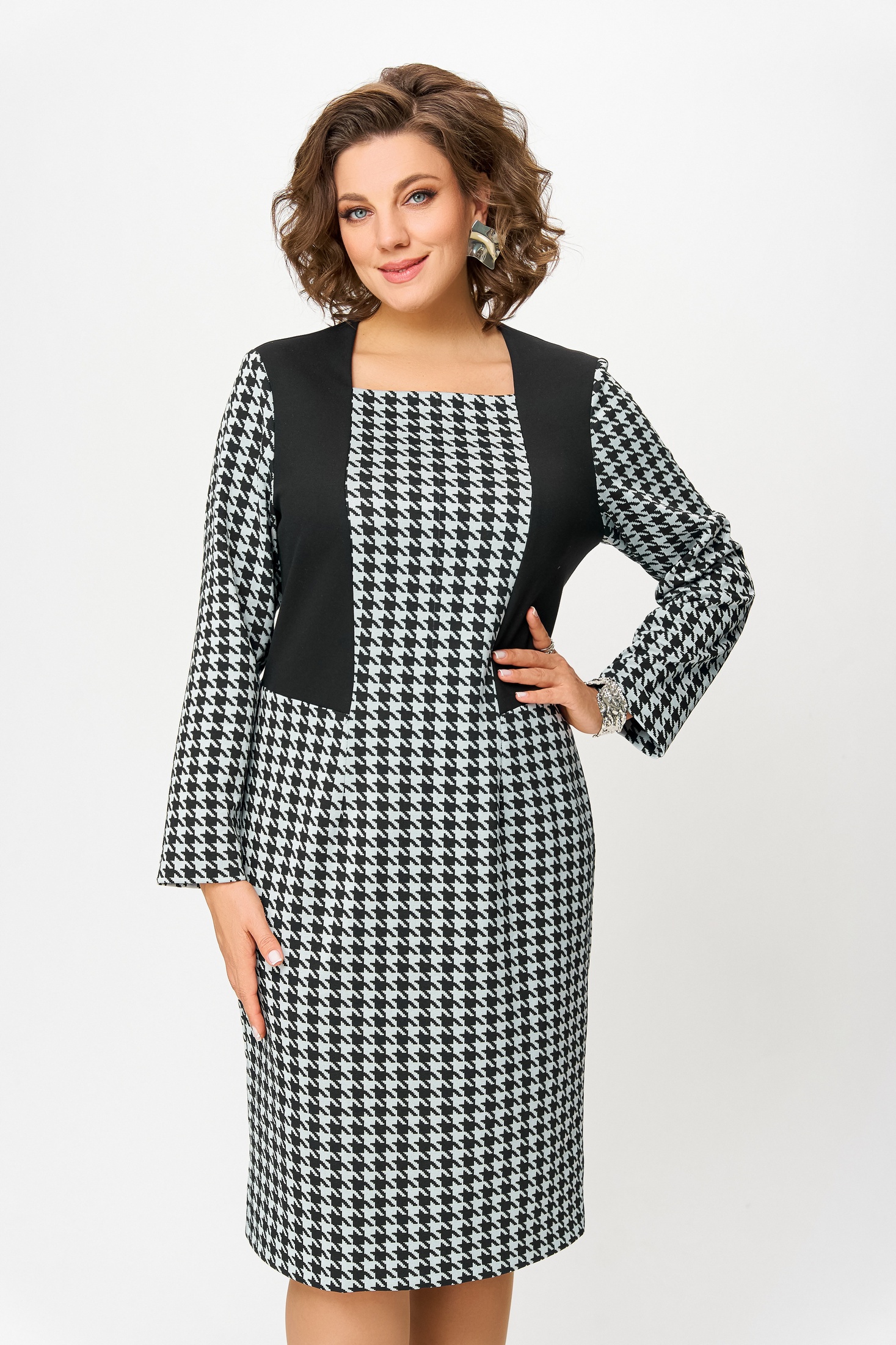 Платье полуприлегающего силуэта из эластичного трикотажного полотна, выполнено в комбинации принт и однотон с имитацией жилета.