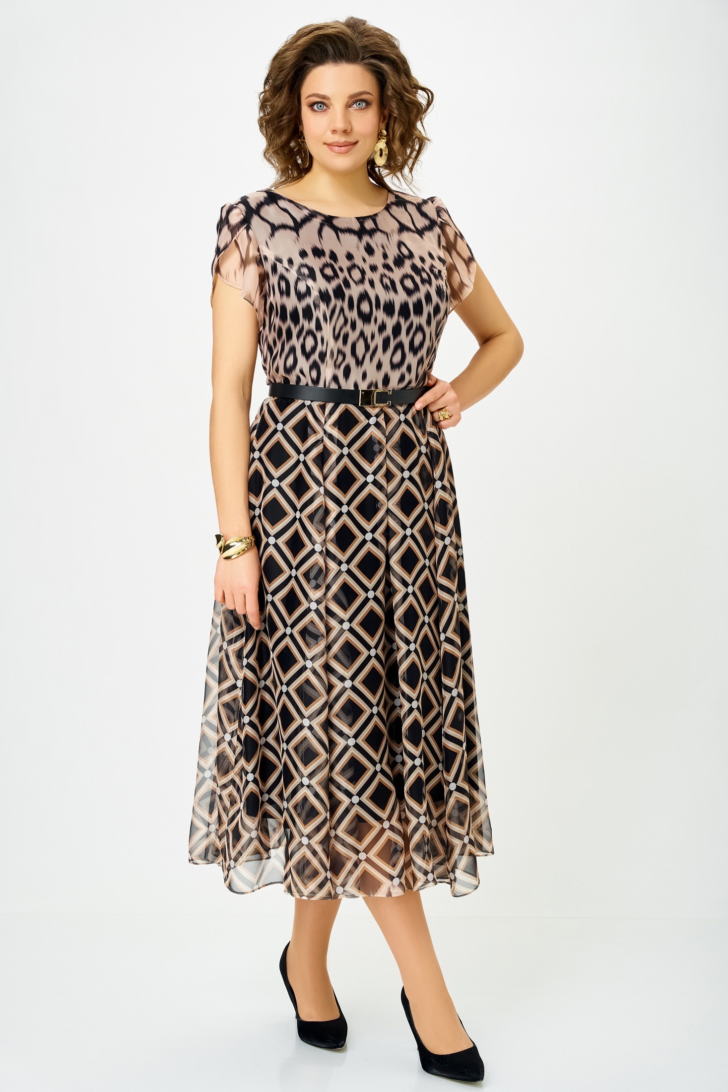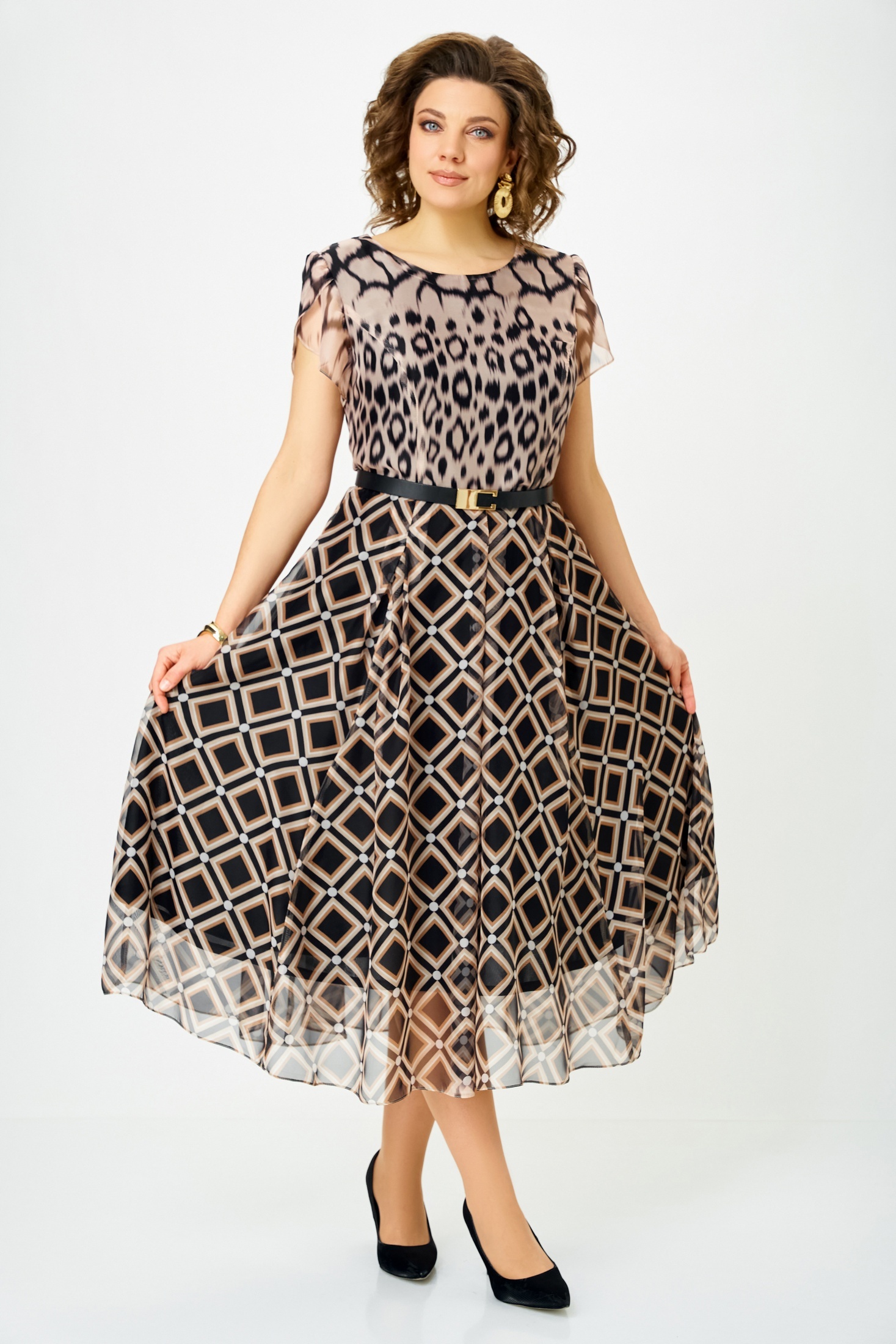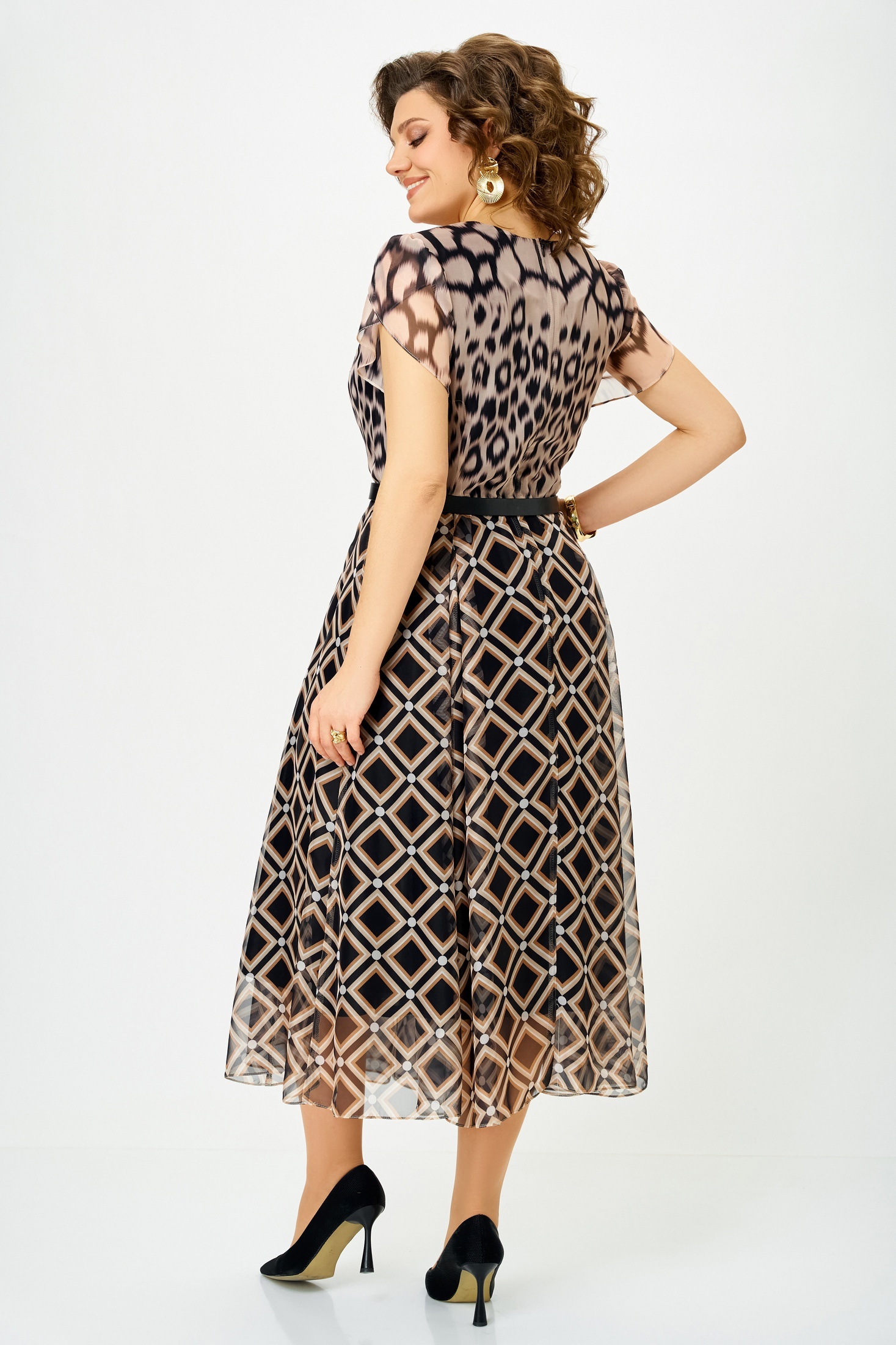 Платье 899 коричневый Swallow — великолепное сочетание стиля и комфорта. Коллекция бренда Swallow предлагает платье из шифона с трикотажной подкладкой, подчёркивающее женственность благодаря Х-образному силуэту. Платье имеет расклешенную юбку со встречными складками и потайную молнию для удобства. Втачной рукав 'тюльпан' длиной 15 см добавляет изящества. Данный наряд идеально подойдёт для весенних и летних мероприятий, подчеркнув ваш неповторимый стиль. Представлено в коричневом цвете с элегантным принтом, длина изделия по спинке составляет 121 см. В комплекте идёт ремень с декоративной пряжкой для завершённости образа.