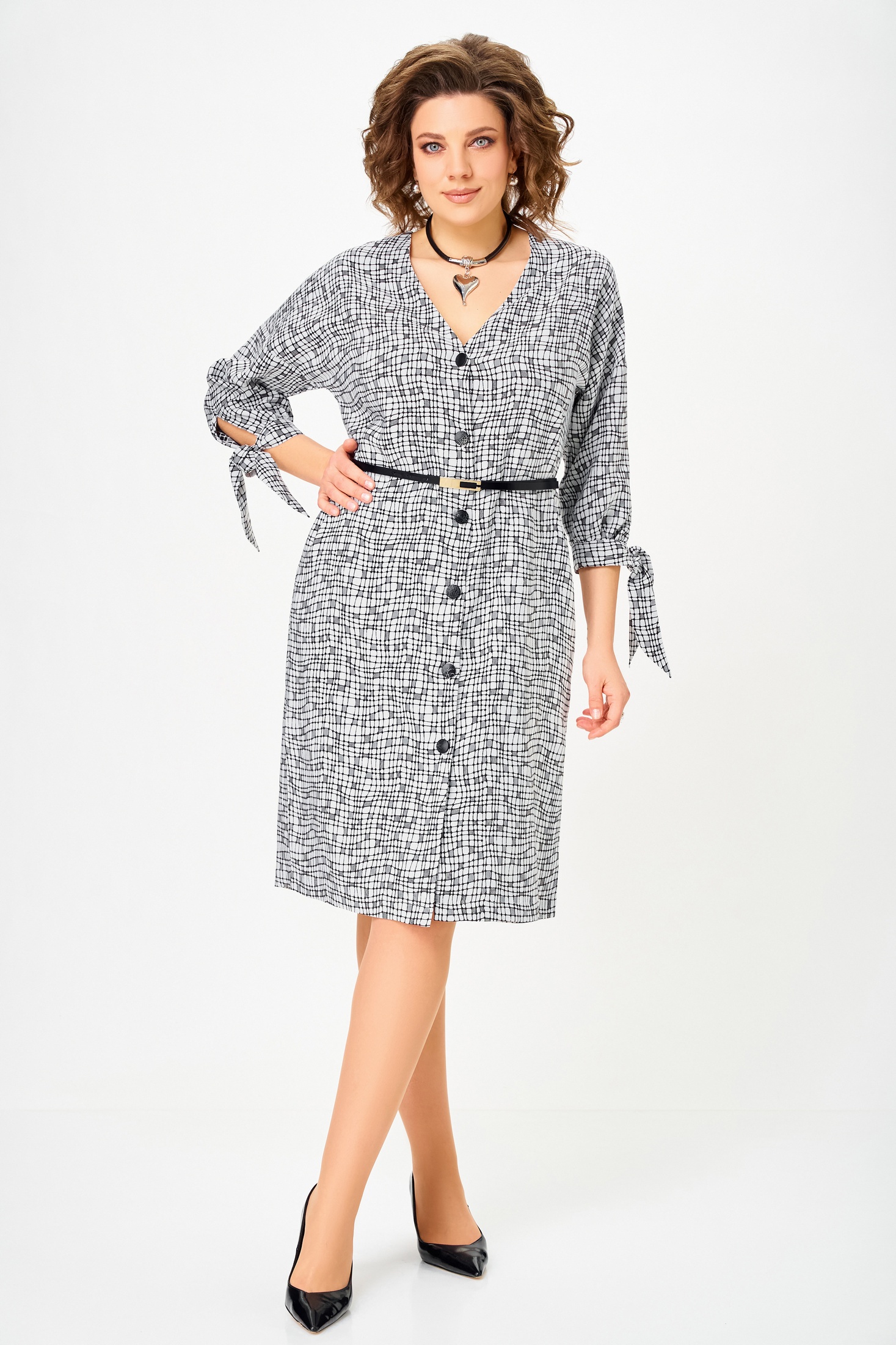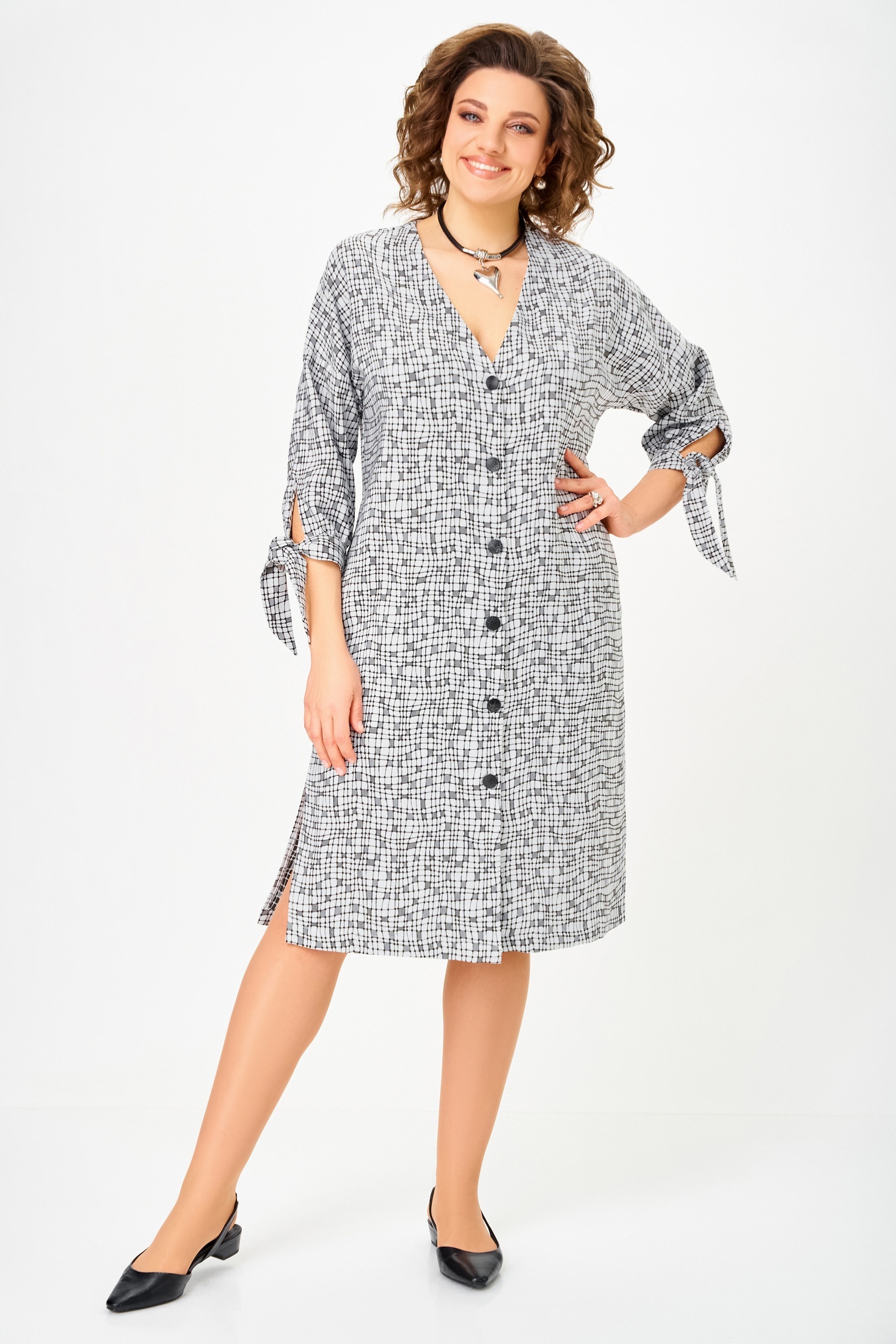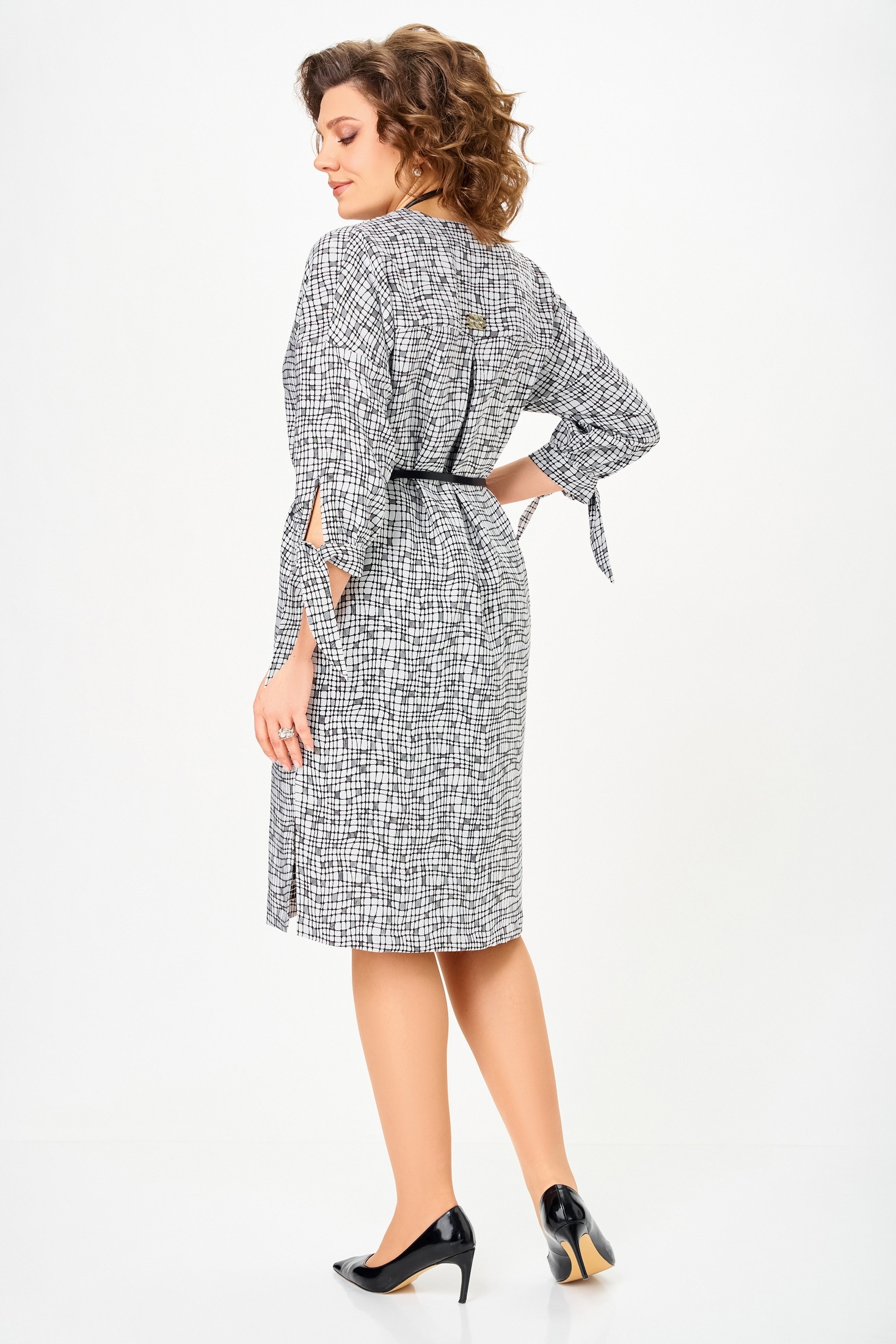 Платье 902-1 Swallow - это стильный выбор для каждого дня. Коллекция бренда Swallow предлагает женственное платье с прямым фасоном, дополненным спущенными рукавами и карманами в боковых швах. Удобный состав ткани из 73% полиэстера, 20% вискозы и 7% спандекса обеспечивает комфорт и лёгкость в каждодневной носке. Платье средней длины по спинке составляет 103 см, добавляя элегантности вашему образу. Рукав с длиной 7/8 и манжетами с завязками придают дополнительное очарование. Черно-белая цветовая гамма идеально подходит для офисного стиля или повседневных событий в любое время года.