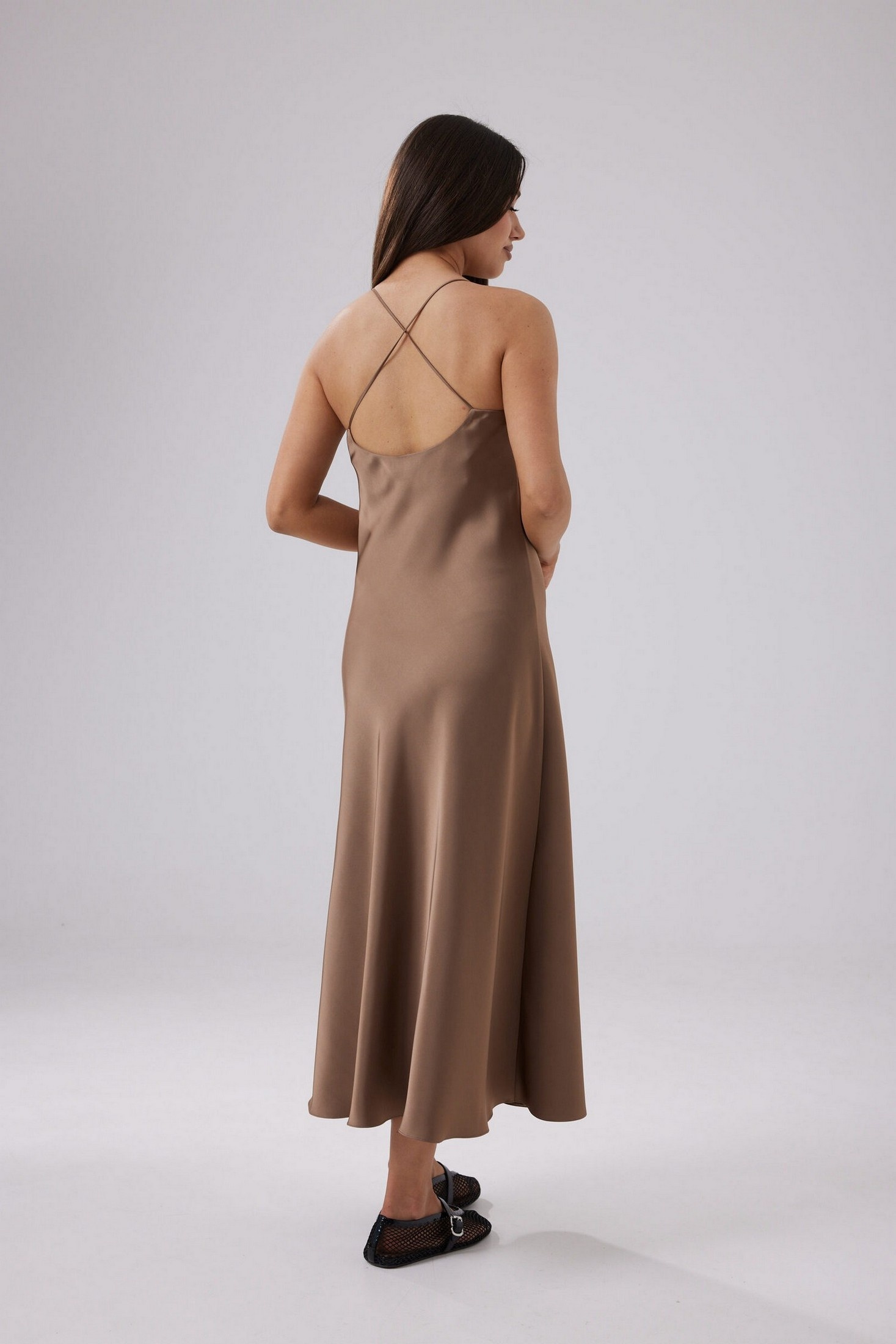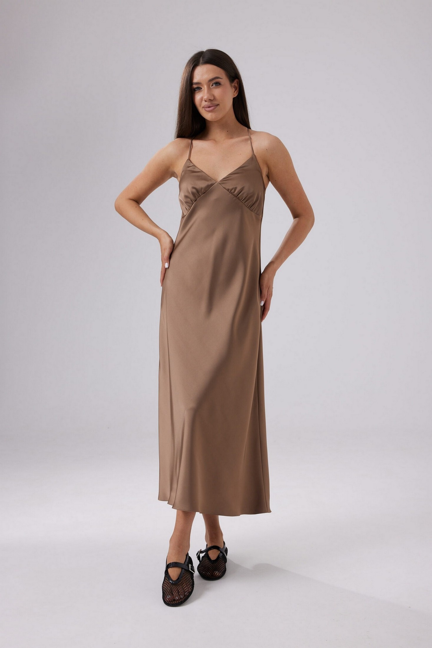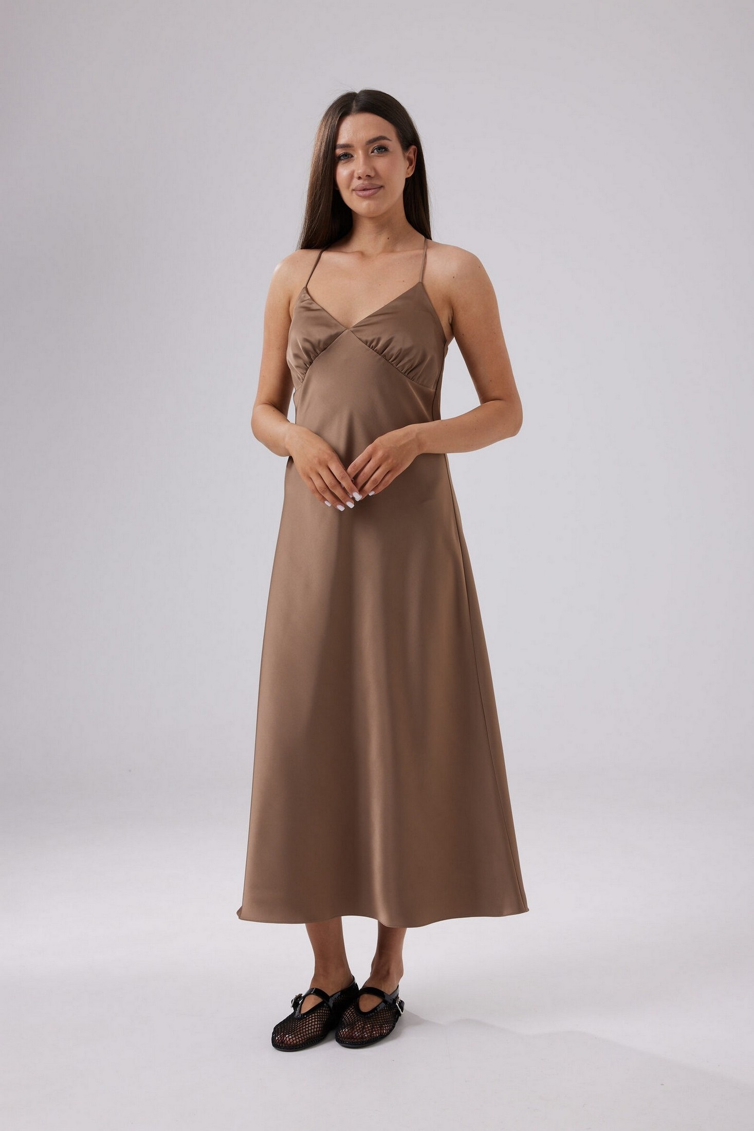Платье 210-1 T.N.D из коллекции бренда T.N.D демонстрирует изысканную элегантность и комфорт. Изготовлено из легкого и струящегося полиэстера, это макси платье подчеркнет ваш изысканный вкус. Платье полуприлегающего силуэта с нерегулируемыми бретелями, крест-накрест переходящими на спинке и декоративными чашами лифа со сборкой, идеально для летнего сезона и праздников. Его цвет кофейный, подчеркивающий утонченность и стиль. Ваша одежда для любого летнего мероприятия.