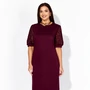 Платье женское, отрезное по линии талии, расширенное к низу. Лиф платья прямого силуэта, отлетной с коротким рукавом. Низ лифа фигурной формы. По спинке чуть длиннее. Платье на трикотажной подкладке. Нижняя часть платья (юбка) присборена по талии на резинку, закреплена с подкладкой. Вырез горловины круглой формы. Платье скреплено с подкладкой по горловине.