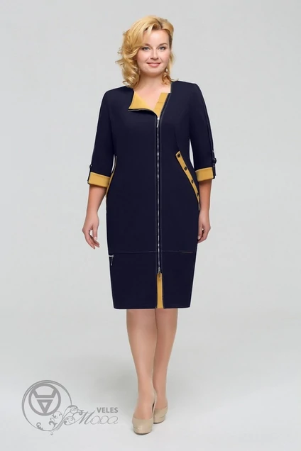 Платье 1201 темно-синий+горчица Tellura-l