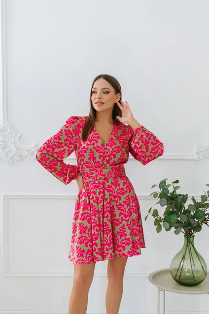 Платье Х- образного силуэта, отрезное по талии, по переду застежка центральная на петли и пуговицы,