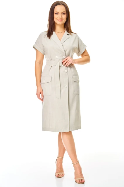Платье 7749 песок Tender and nice — это идеальный выбор для летнего сезона. Коллекция бренда Tender and nice подчеркивает утонченность и стиль в каждом элементе. Платье выполнено из лёгкой ткани, состоящей на 50% из вискозы и на 50% из полиамида, что обеспечивает комфорт и воздухопроницаемость. Полуприлегающий силуэт подчеркивает фигуру, а пиджачный воротник и лацканы добавляют элегантности. Центральная застежка на петли-пуговицы и съемный пояс с пряжкой создают изысканный образ. Накладные карманы с клапаном являются не только декоративным, но и функциональным элементом. Песочный оттенок подойдёт для повседневных и офисных образов, а длина миди подчеркнет уверенность и стиль.