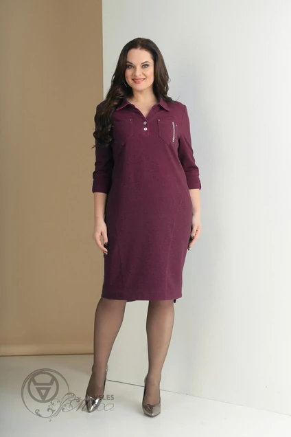 Уютное платье из трикотажного полотна "дрессовка" будет отличным дополнением Вашего гардероба. Модель полуприлегающего силуэта, слегка зауженная к низу. На переде обработаны нагрудные вытачки, отрезные кокетки, фигурные планки по вырезу горловины и декоративные рельефные швы, идущие от талии до низа. Также имеются две пары карманов: накладные в области груди и внутренние в области бёдер. Спинка со средним швом и талиевыми вытачками. Рукав втачной, одношовный, с отрезной манжетой. Манжета присобрана складками, скрывающимися под патой. Низ изделия разноуровневый: длина переда короче длины спинки. Боковые швы с разрезами. Воротник стояче-отложной с отрезной стойкой. Отделкой изделия служат хальнитены, декоративная тесьма и кант (по воротнику, планкам, карманам и патам). Длина от центра горловины спинки до низа в 54-58р - 103см., в 60-64р - 109см. Длина рукава - 46см.