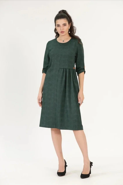 Стильное платье с рукавом 3/4 с элегантным принтом понравится любительницам классического повседневного стиля. Длина модели оптимальна для использования в офисе или на прогулке.
