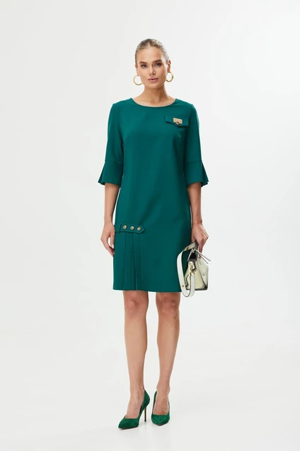 Стильное женское платье в весеннем оттенке подойдет любительницам легкости в образе. Паты рукавов оформлены в виде озорных складочек. Платье от белорусского производителя безупречно сядет по фигуре любого типа. Небольшая складочка украшает и переднюю полочку молодежного платья.