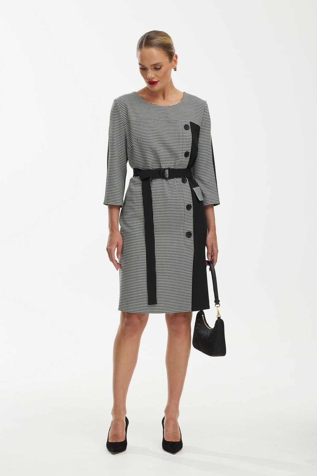 Женское элегантное платье с ремнем поражает своим изяществом и утонченностью. Оно выполнено из шикарной ткани которая приятно обнимает фигуру, подчеркивая линии тела. Платье имеет классический силуэт, который подходит для различных мероприятий — от романтического ужина до деловой встречи.